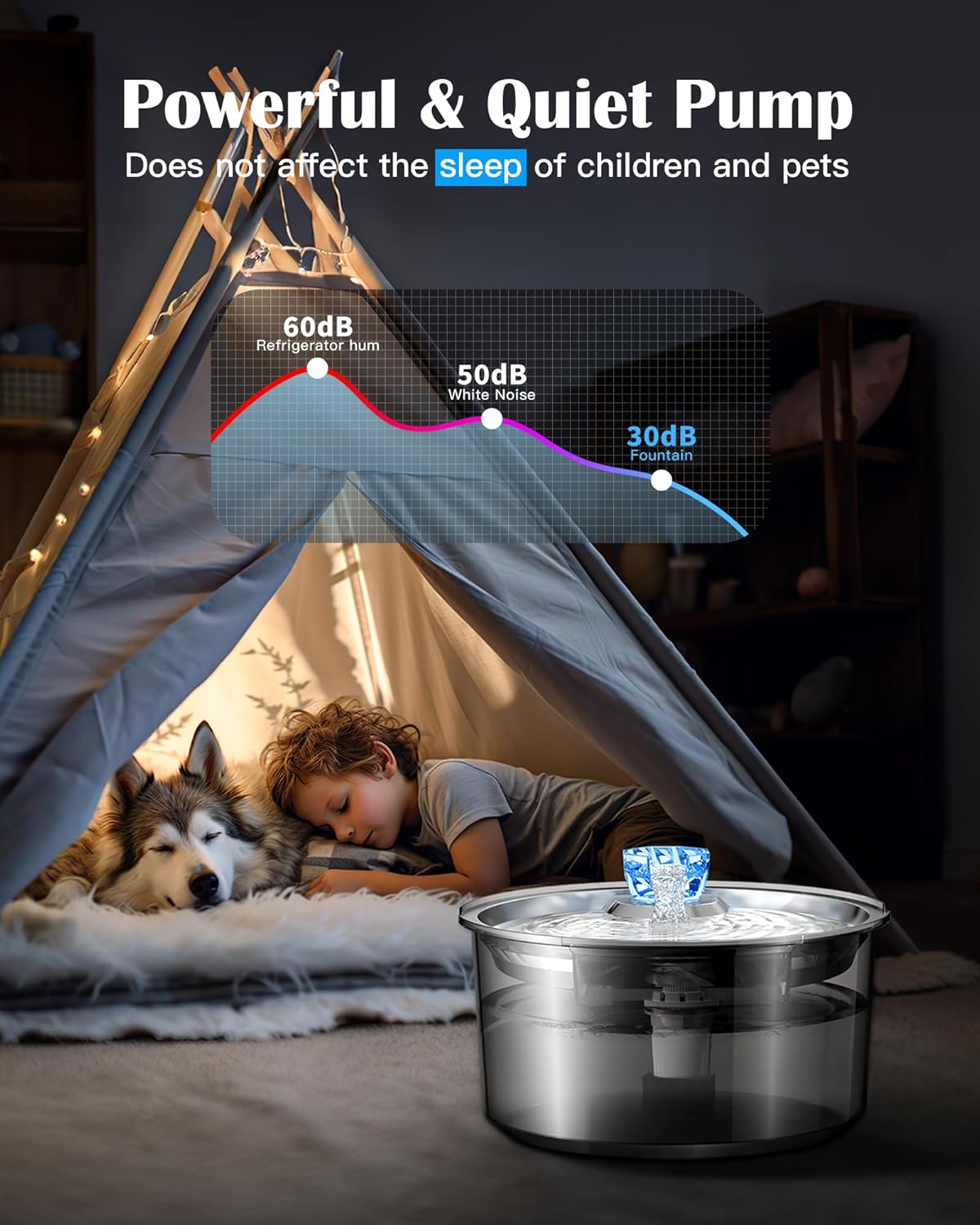- Perfect Compatibility – Replacement dog and cat water fountain pump specially designed for lesotc stainless steel pet water fountains, fitting 3-gallon large dog water dispensers and compatible with models D2223, D2341, D2322, D2419, D2340. Pump only; fountain sold separately.