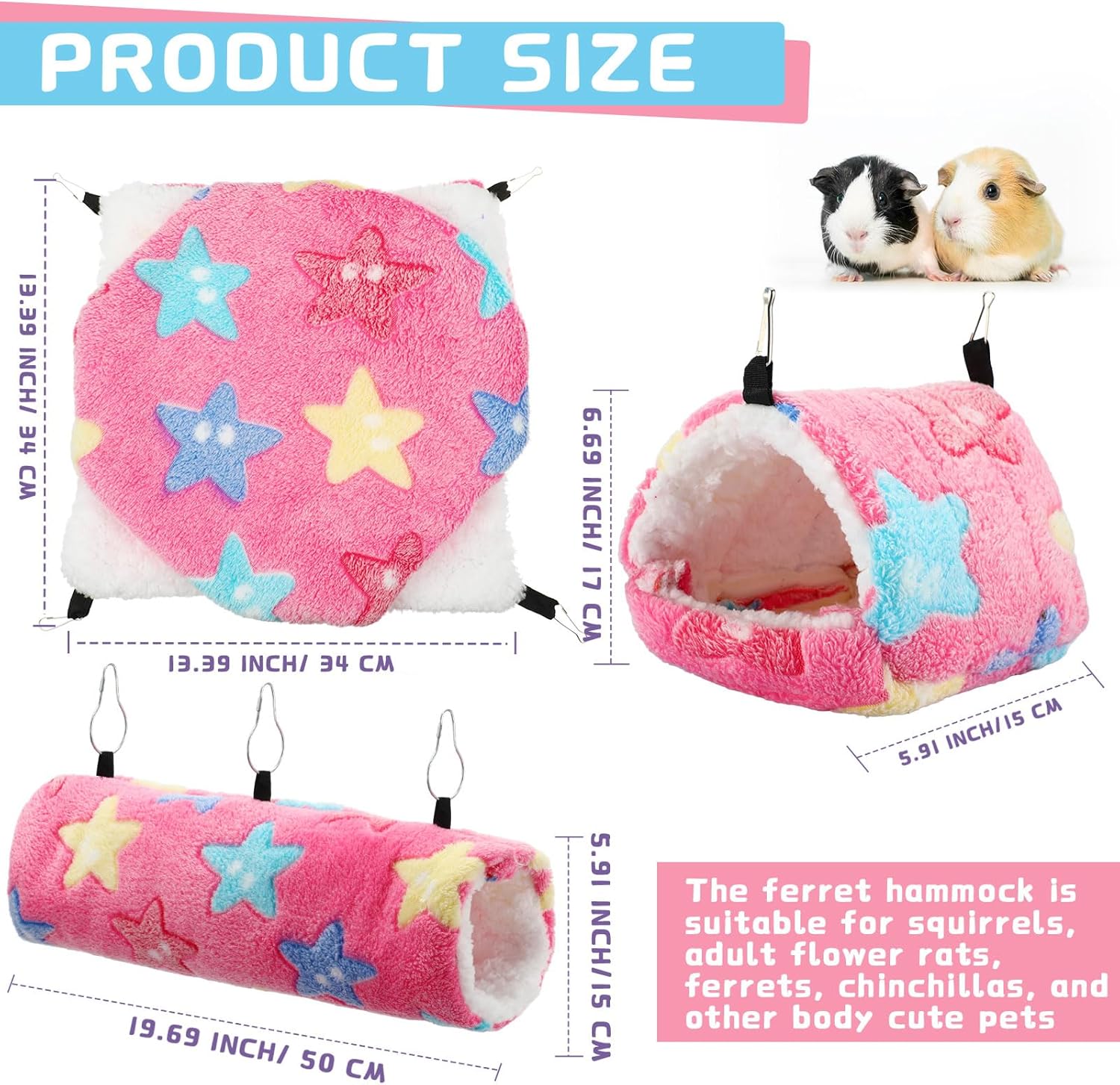 - Scope of Application: ferret hammocks beds set, tunnels and beds are suitable for hamsters, guinea pigs, chinchillas, ferrets, parrots, rabbits, rats, mice, hedgehogs, parrots and other small animals, which are thoughtful gifts for your cute pets