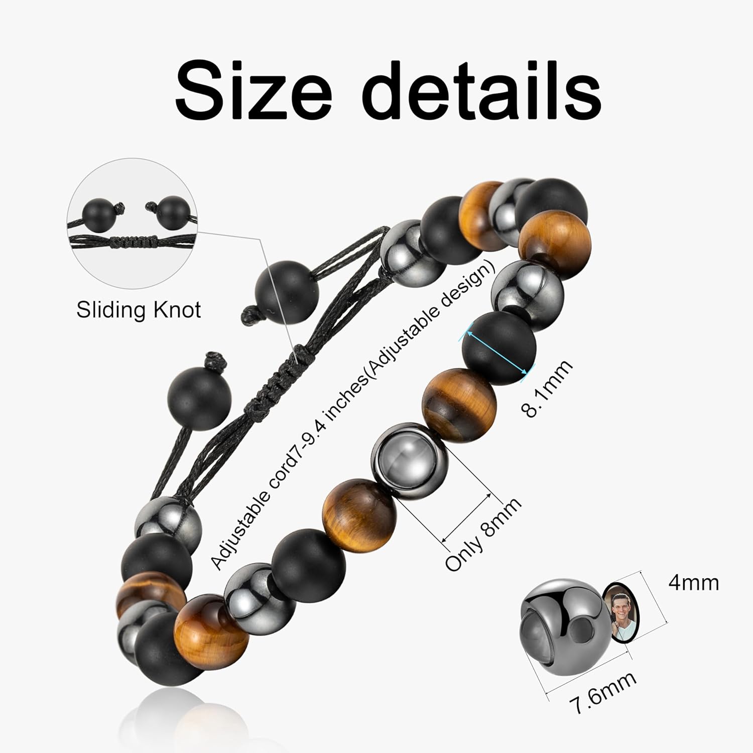 - [Personalize your treasured memories into a photo bracelet] - Only you can see and share the image engraved on the project stone. Personalize any image you like( men, dad, boyfriend, husband, uncle, brother, friend or have gone...)