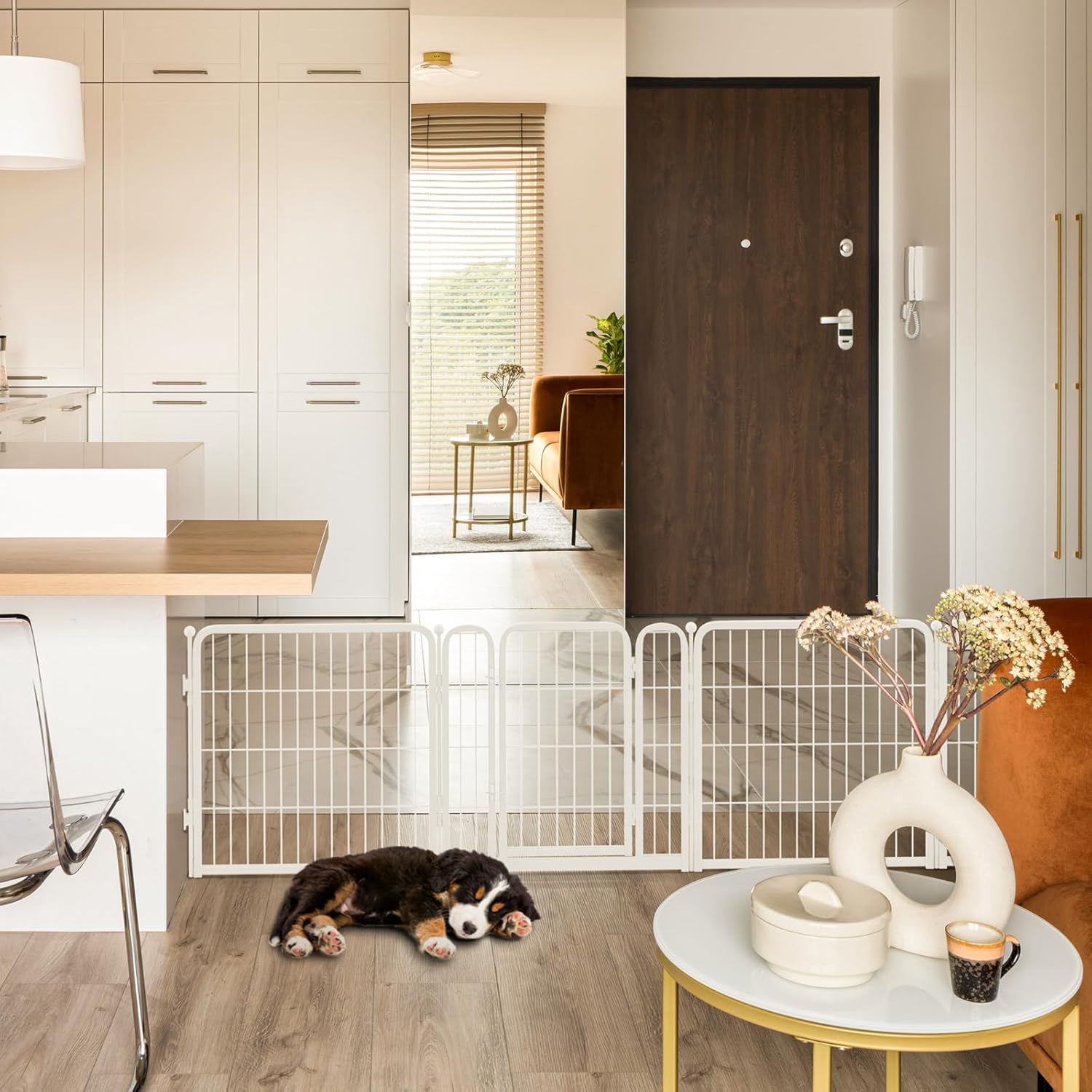 - Full-Metal Design with Elegant Aesthetics: The dog gate is made from full-metal material. The accompanying Fence-to-Wall anchors securely fastens the panels to the wall, ensuring a highly stable structure even when set up as a closed-loop play area. Its sleek lines and metallic texture blend seamlessly with a variety of home decor styles, creating a balance of functionality and aesthetics.