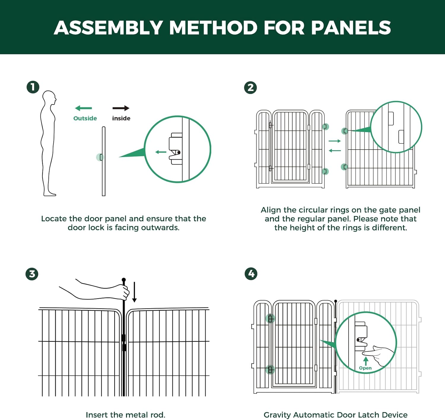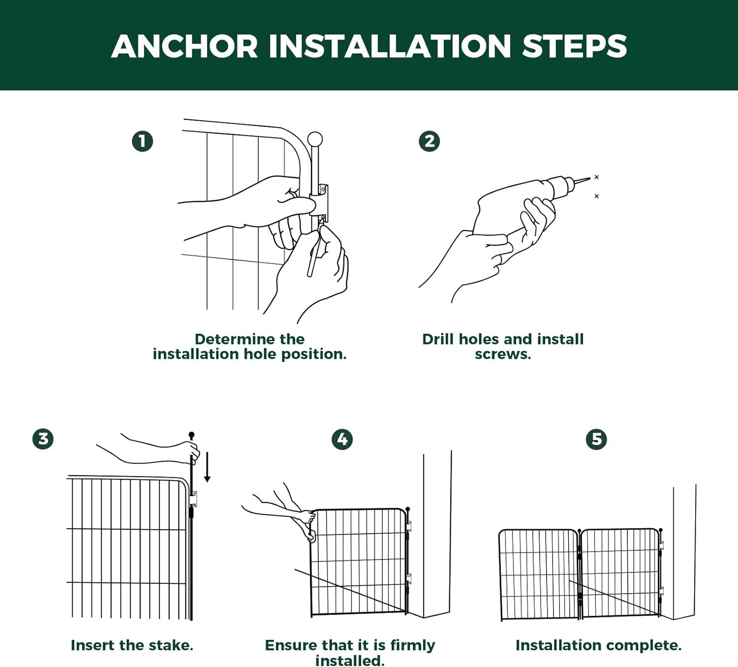 - Full-Metal Design with Elegant Aesthetics: The dog gate is made from full-metal material. The accompanying Fence-to-Wall anchors securely fastens the panels to the wall, ensuring a highly stable structure even when set up as a closed-loop play area. Its sleek lines and metallic texture blend seamlessly with a variety of home decor styles, creating a balance of functionality and aesthetics.