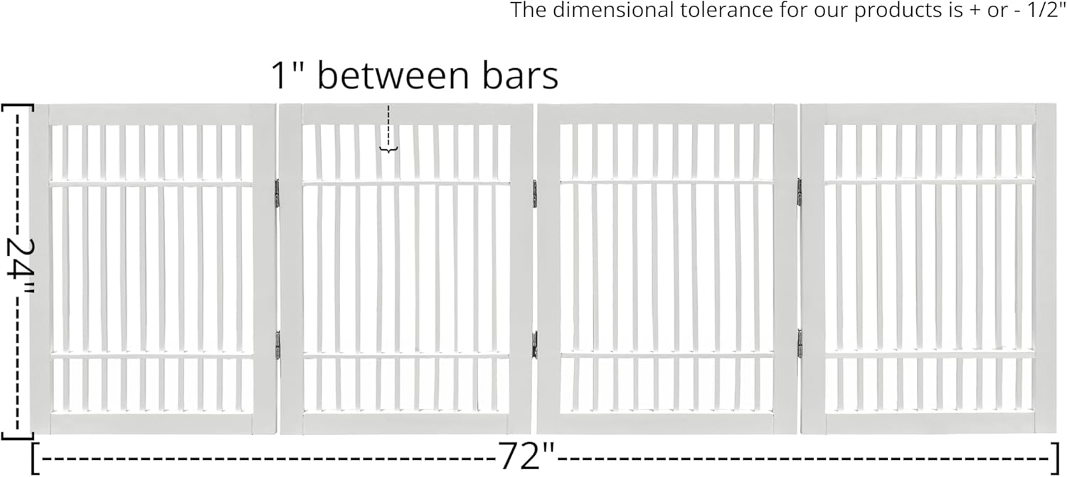 Pet Dog Gate Strong and Durable Freestanding Folding Acacia Hardwood Portable Wooden Fence Indoors or Outdoors by Urnporium (White Pet Gate, 4 Panel 24" Tall)
