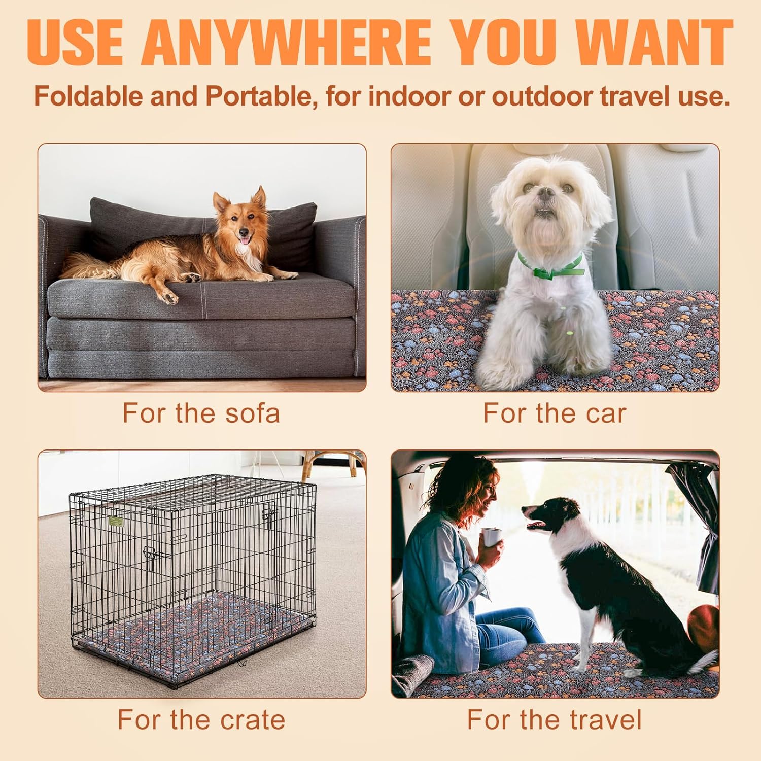 - Anti-slip Dots Design - Our dog mat has thousands of anti-slip dots on the underside, can effectively fix the mat on the floor and prevent it from sliding, giving your dog a great sense of security and comfort. Your cute puppy will enjoy sleeping, snuggling or rolling on the crate pad mat very much