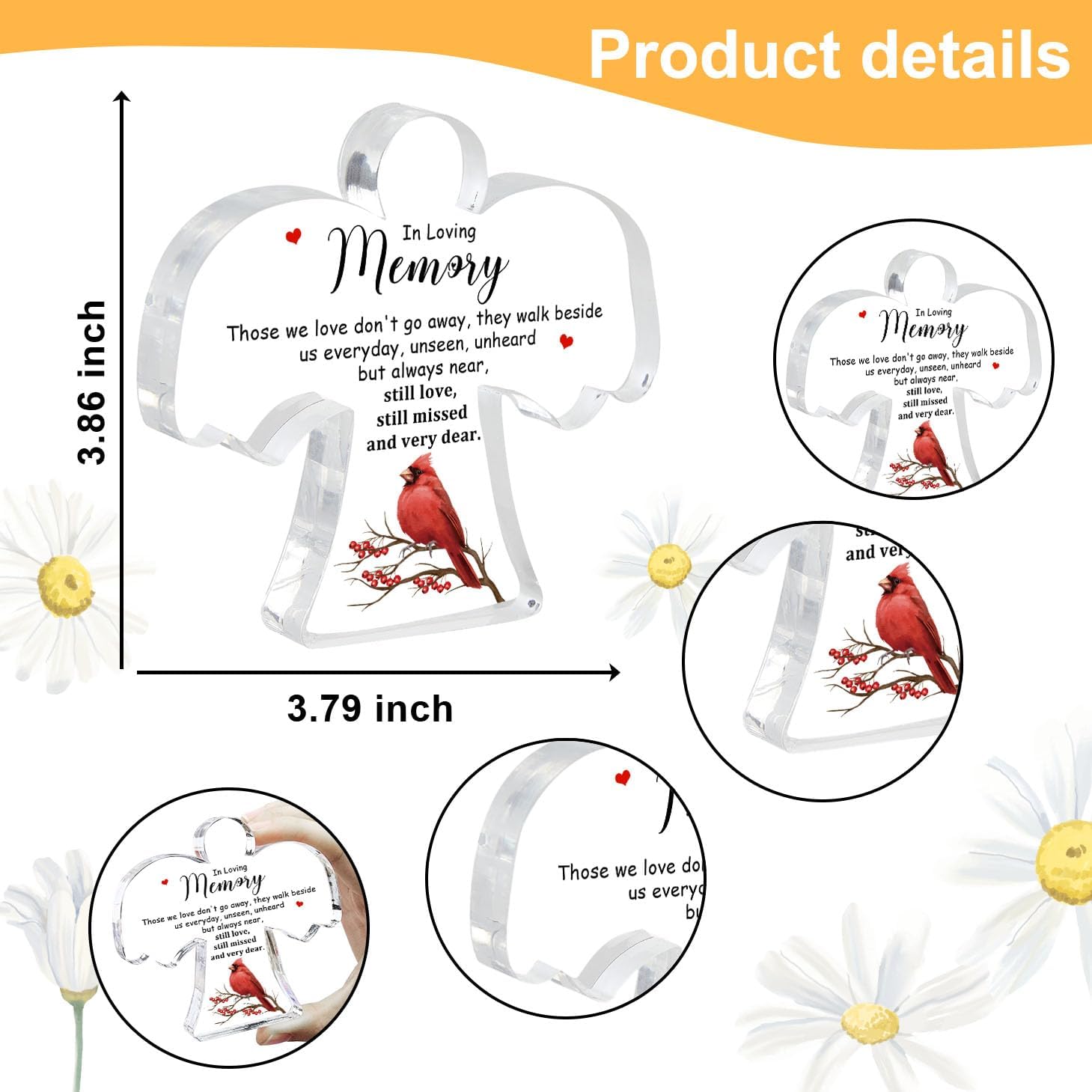 Memorial Cardinals Gift, Angel Acrylic Bereavement Memorial Sign Decor, Condolences Remembrance Grief Gift for Loss of Mother Mom Father Dad, Memory Sign for Home Living Room Desk Centerpiece Decor