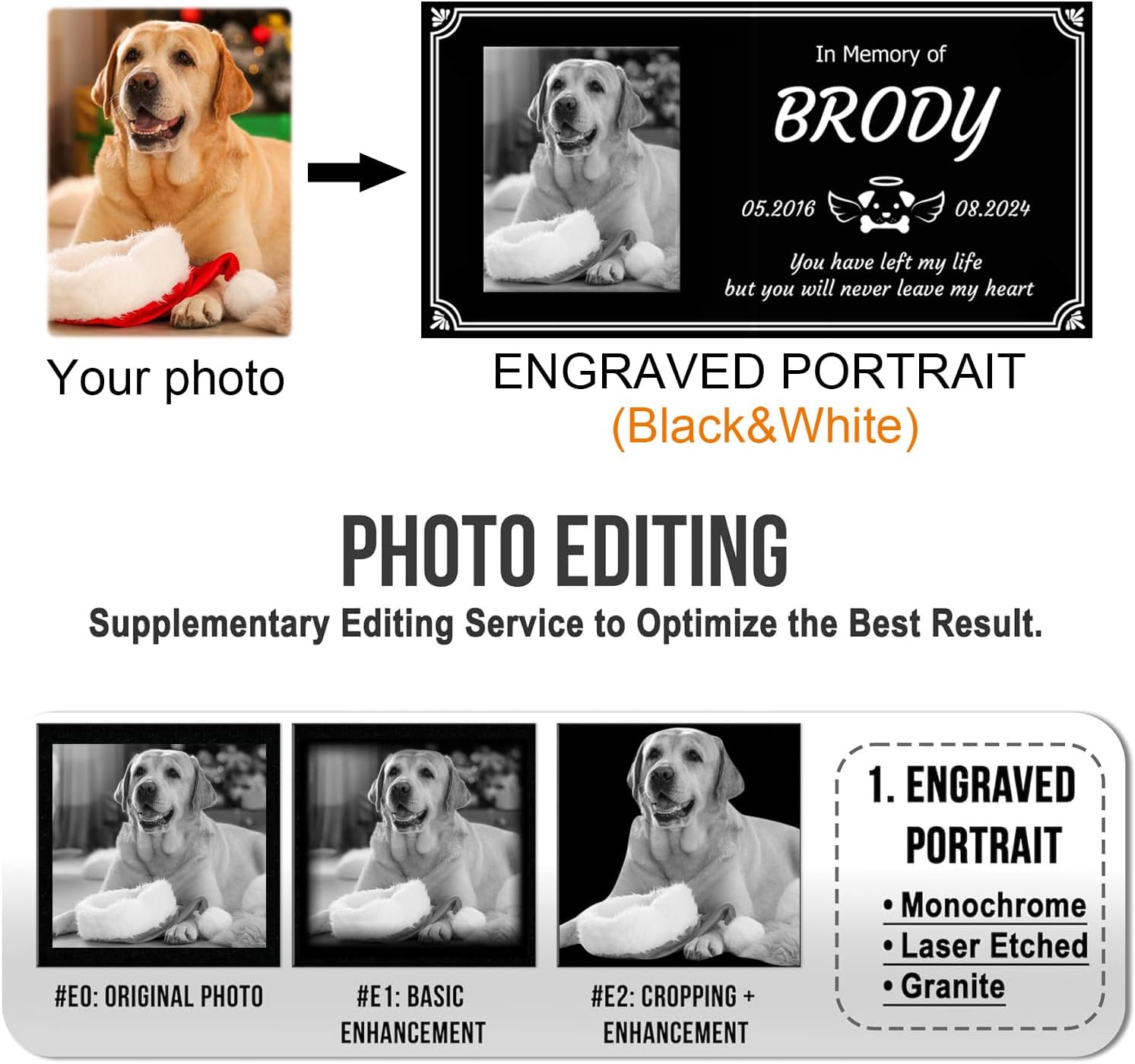 - ◕‿◕【Package&Size】 Size: 12 x 6 x 0.25 inches.12 x 8 x 0.25 inches. 16 x 8 x 0.25 inches.pet memorial stones * 1 PCS. Small Brackets *2PCS. Memorial stone is high-quality natural black granite. High quality natural granite carvings are permanent, water and weather resistant and can be placed indoors and outdoors for permanent use.