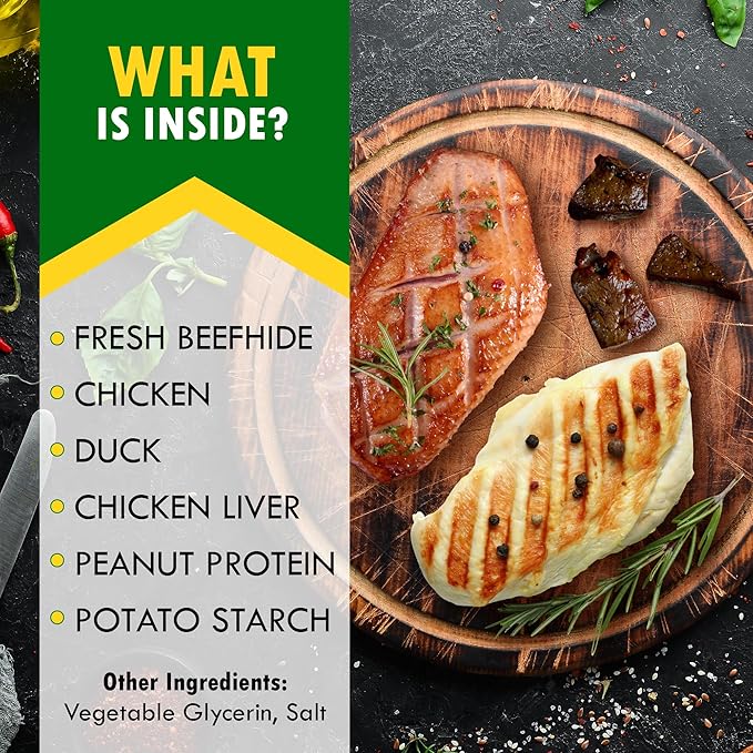 - NOURISH WITH HIGH PROTEIN from ALL NATURAL CHICKEN & DUCK: Our kabob dog treats aren't just delicious – they're packed with protein fatty acids to support your dog's skin, coat, and overall health. Say goodbye to dull coats and hello to shiny, healthy fur with every satisfying chew. Give your pup the nutritious reward they deserve while keeping their skin and coat looking their best.