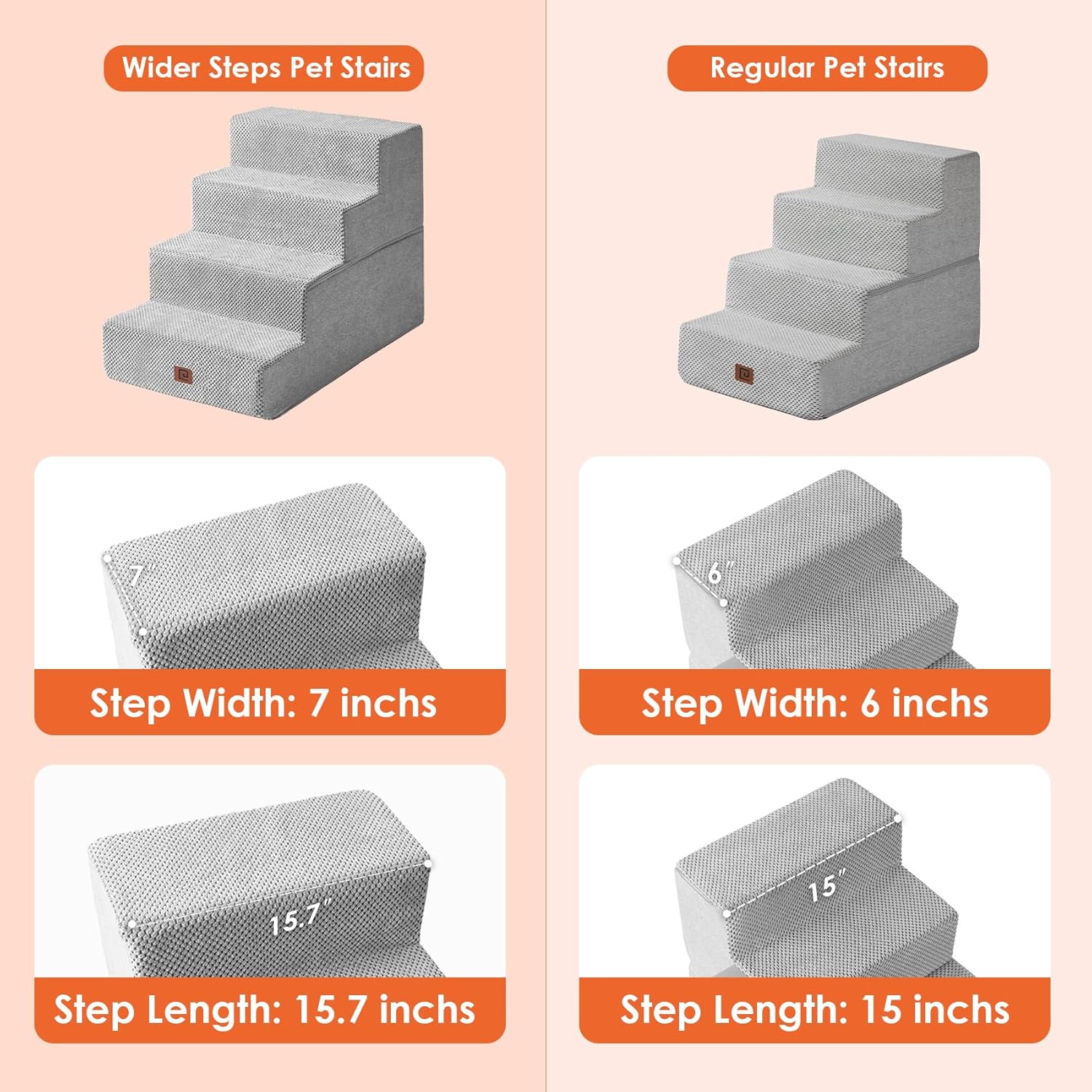 EHEYCIGA Dog Stairs for Bed 20" H, 4-Step Extra Wide Dog Steps for High Bed, Pet Steps for Small Dogs and Cats, Non-Slip Balanced Pet Ramp Indoor, Light Grey