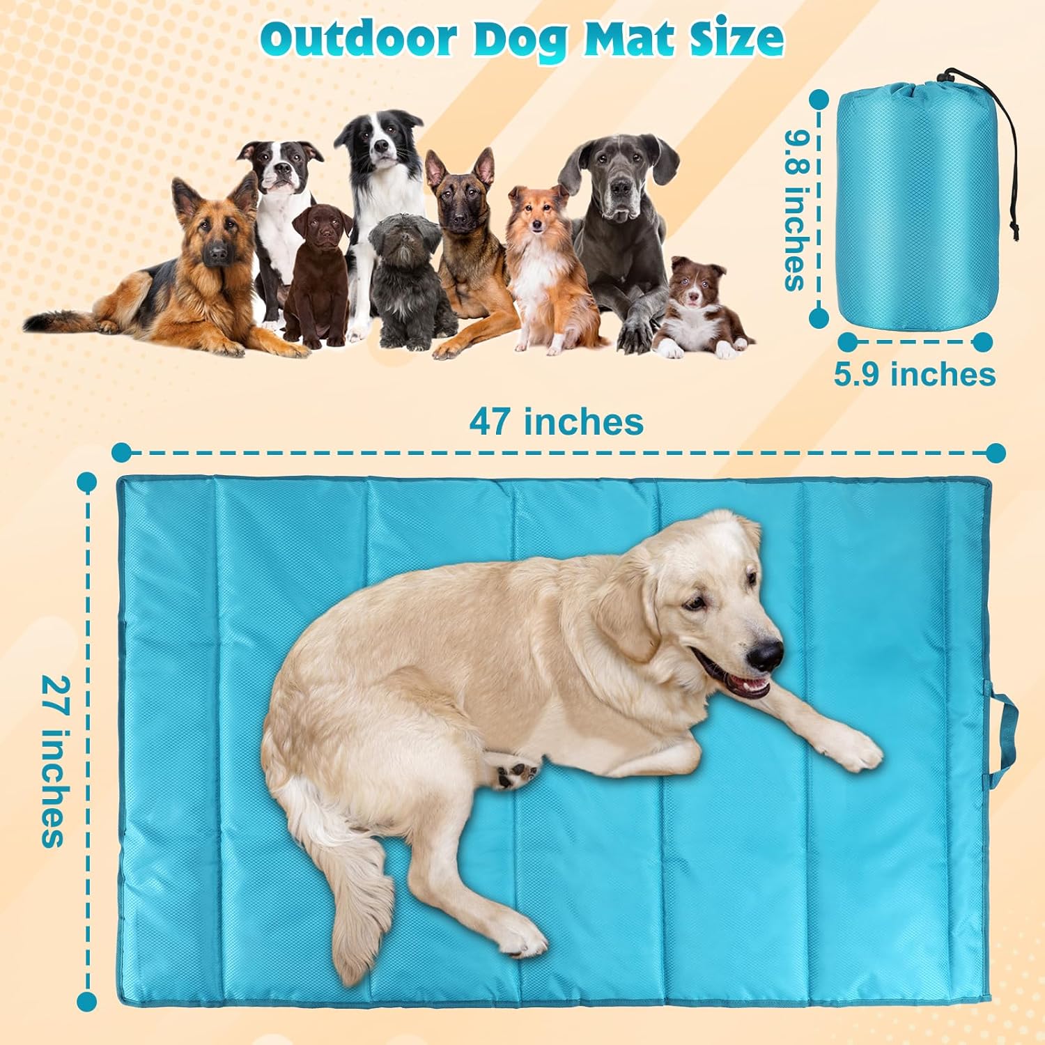 BWOGUE Large Outdoor Dog Bed, Portable Waterproof Camping Mat, Washable Travel Mat with Carry Bag for Medium and Large Dogs, 47"X27" (Blue)