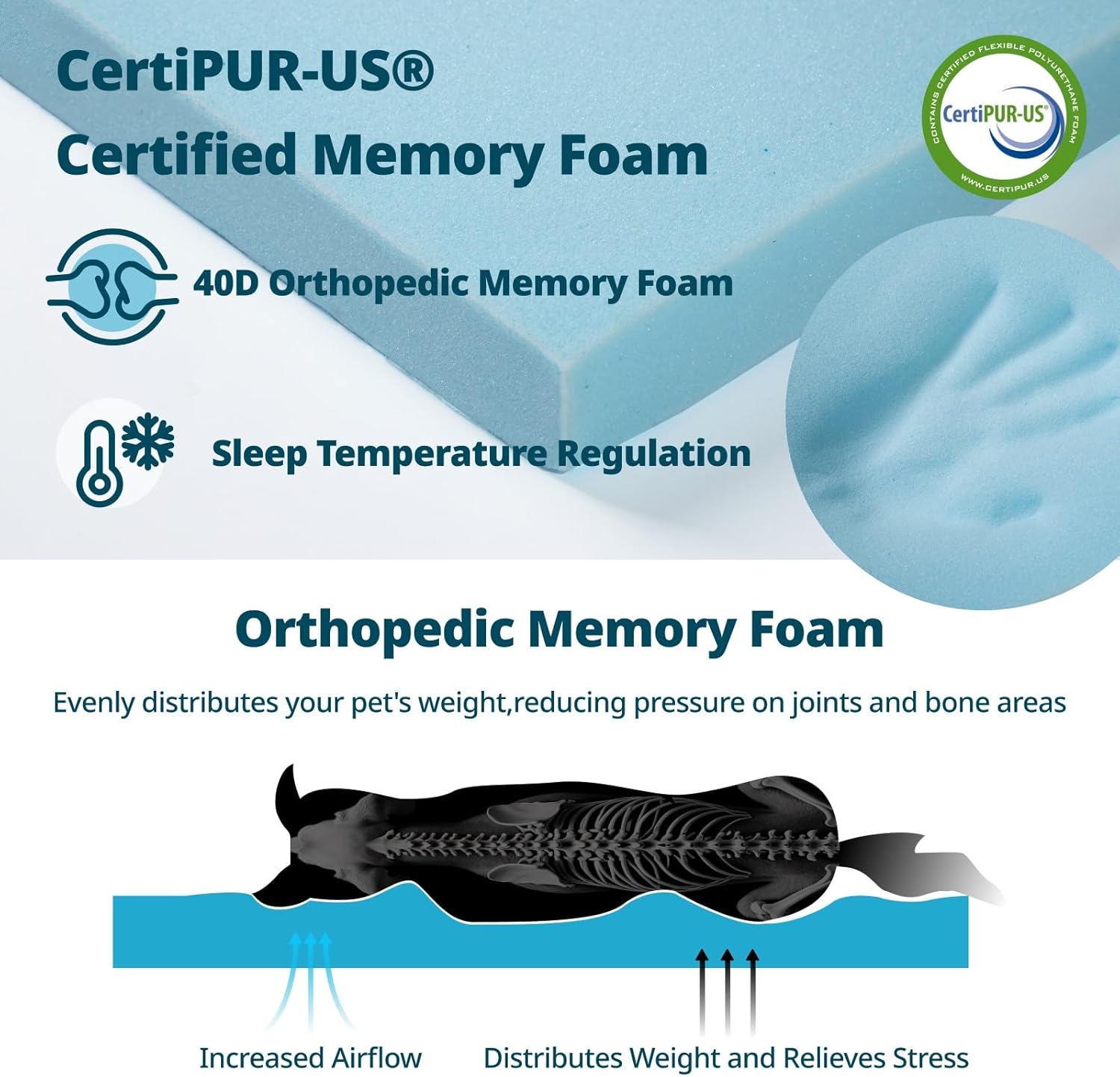- WATERPROOF LINER: We use a 100% waterproof lining to protect the sponge and prevent liquid penetration, so that even if an accident happens, your pet can stay comfortable and the bed stays fresh.