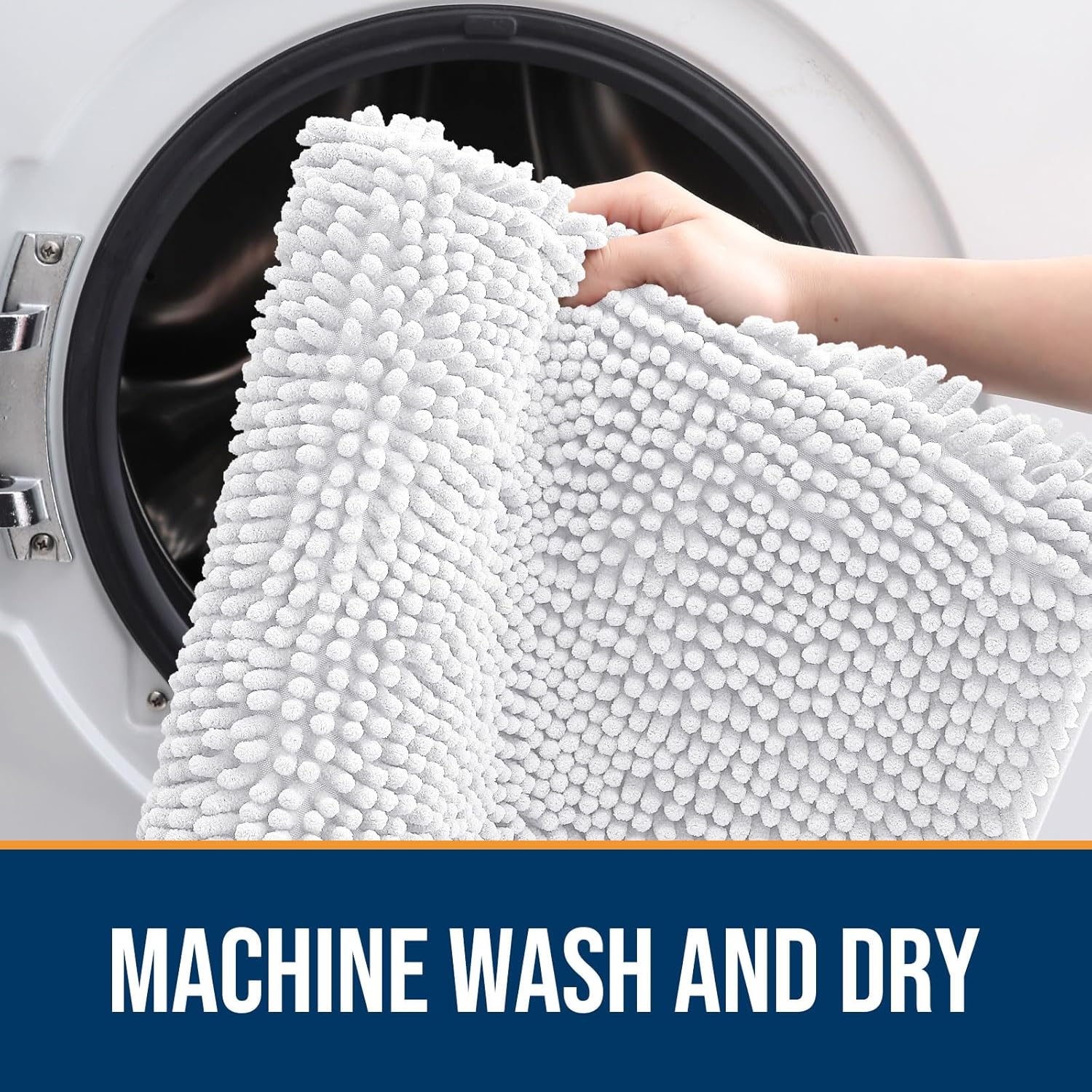 OLANLY Dog Door Mat for Muddy Paws 30x20, Absorbs Moisture and Dirt, Absorbent Non-Slip Washable Doormat, Quick Dry Chenille Mud Mat for Dogs, Entry Indoor Entryway Carpet for Inside Floor, White