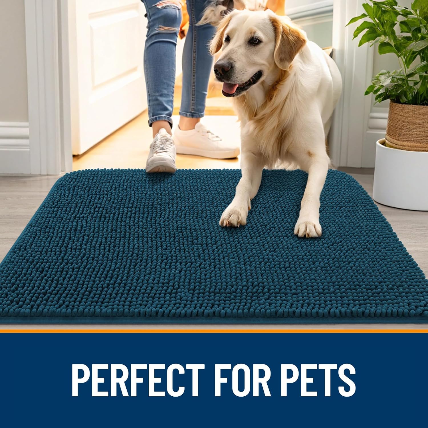 OLANLY Dog Door Mat for Muddy Paws 59x35, Absorbs Moisture and Dirt, Absorbent Non-Slip Washable Doormat, Quick Dry Chenille Mud Mat, Entry Indoor Entryway Carpet for Inside Floor, Atlantic Blue