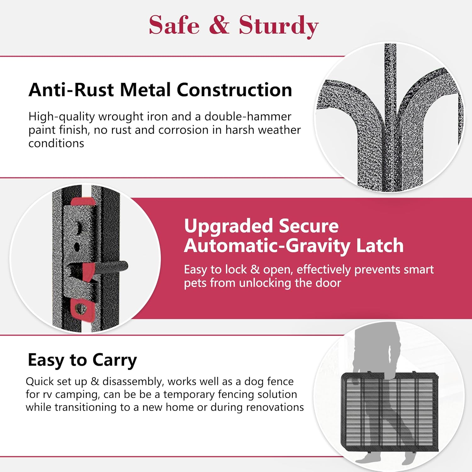 - 【Anti-Rust Coatings Finish】- The dog pen indoor is coated with multiple layers of anti-corrosion coating powder and non-toxic wrought iron finish, prevent rust and corrosion, ensures works well in various bad weathers and extend its life, great indoor and dog playpen indoordog fences indoor for people and dogs