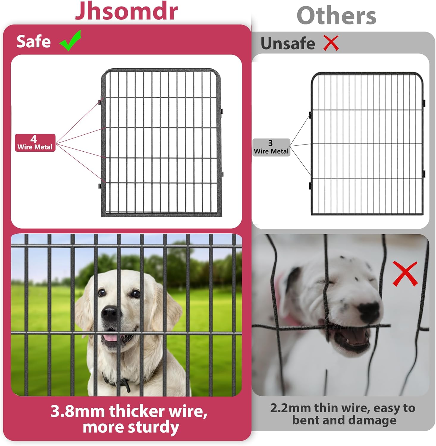 - 【Sturdy Metal Construction】- Designed with made of a high tensile-strength metal wire and heavy duty metal structure, Jhsomdr dog playpen prevents pets from knocking the fence panels down, chewing or tearing, suitable for medium/small dogs. Besides, solid stakes provides greater stability to support the dog fence