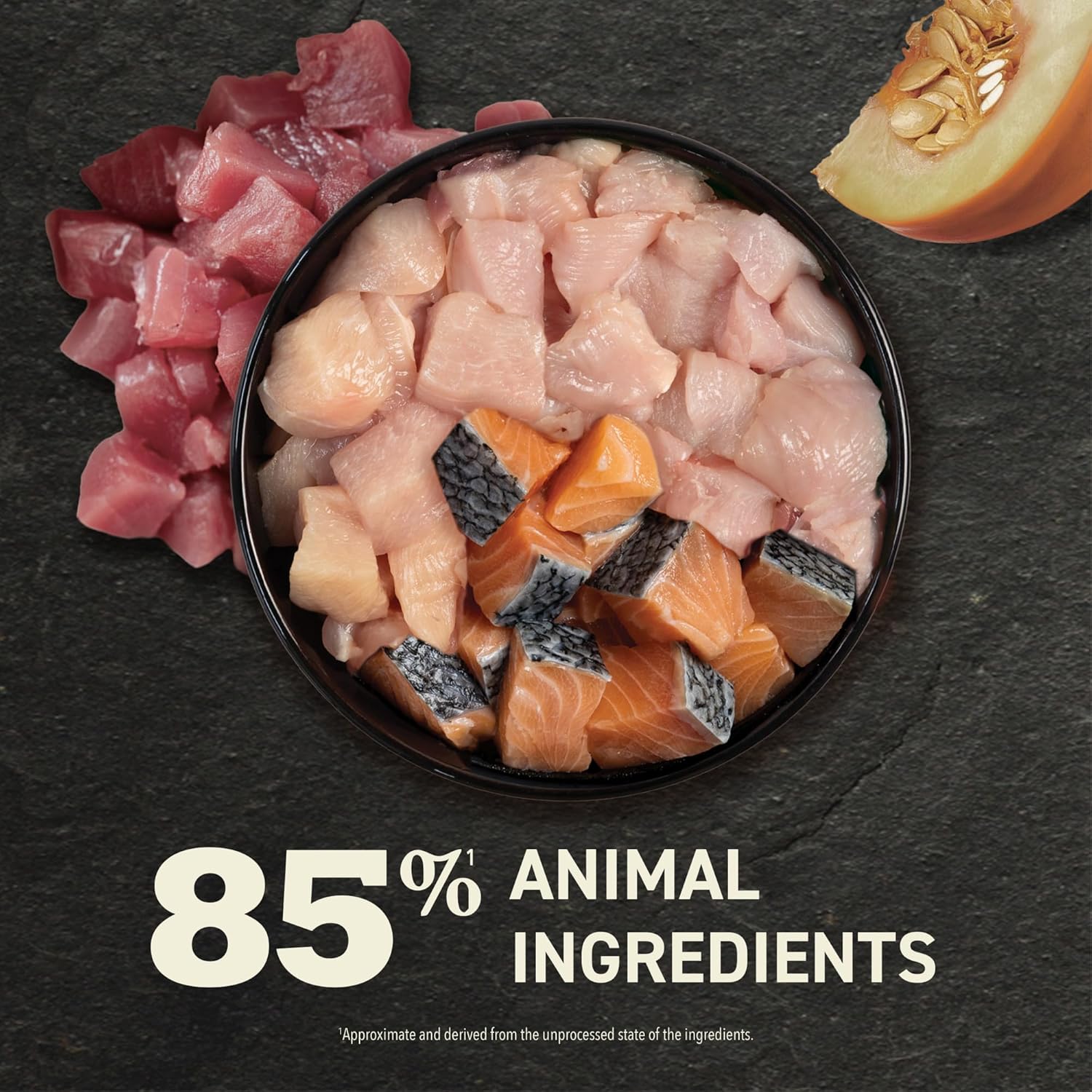 - Each wet cat food recipe is crafted with 85% animal ingredients** including tuna, salmon and chicken.