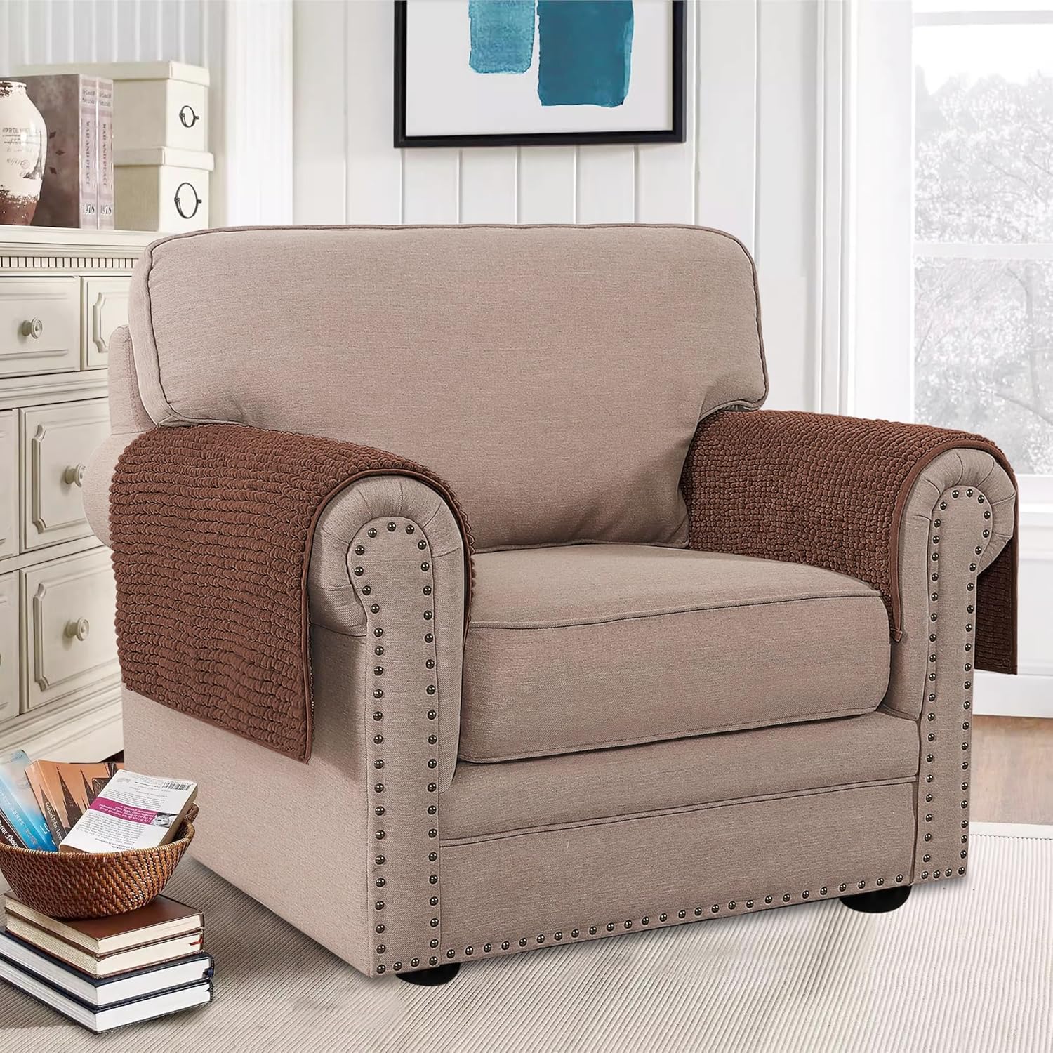 H.VERSAILTEX Plush Chenille Couch Armrest Cover 2 Packs Thick and Soft Sofa Covers Furniture Protector Cover for Pets (27.5" x 27.5", Caramel)