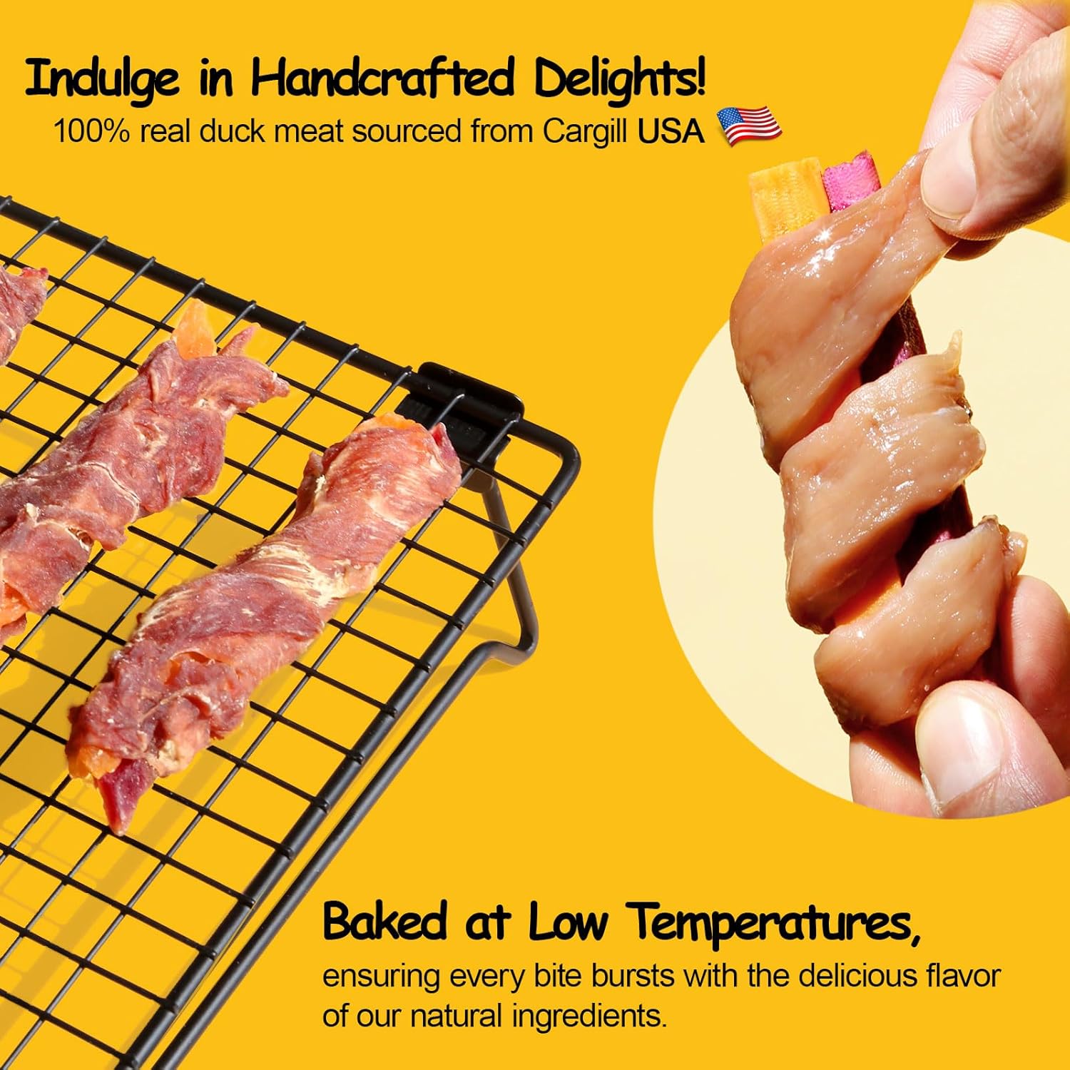 - ALL-NATURAL DOG TREATS : 100% real duck meat is baked at low temperature to obtain fresh and delicious flavor, flavorful and tempting snacks. Reduces protein destruction from heat, so every dog gets nutritious meat. No Wheat, corn, and soy-free recipes, and never, ever any artificial ingredients or preservatives.