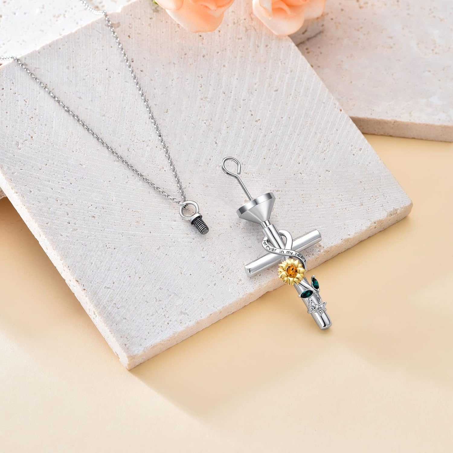 - Urn Pendant Use: If you don't want put ashes,you can put a small amount of hair/sand/dirt etc in this urn necklace, "NO longer by my side, but forever in my heart."