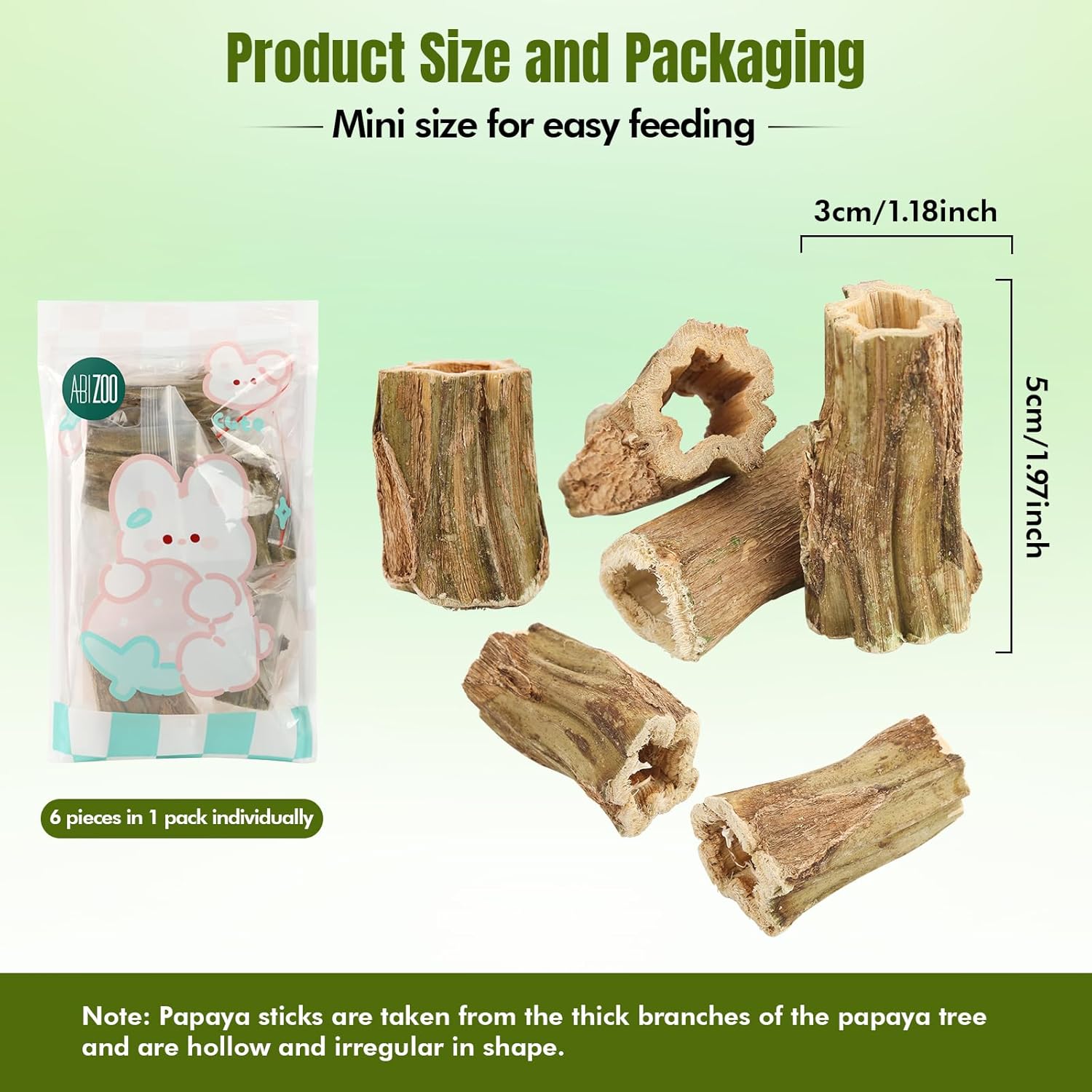 Abizoo Natural Bunny Chew Toys,6 Pcs Organic Papaya Wood Sticks Chew Toys for Rabbit,Hamster,Guinea Pig,Chinchilla,Gerbil,Rat Healthy Chews Teeth Grinding Treats, Squirrel Molar Snack