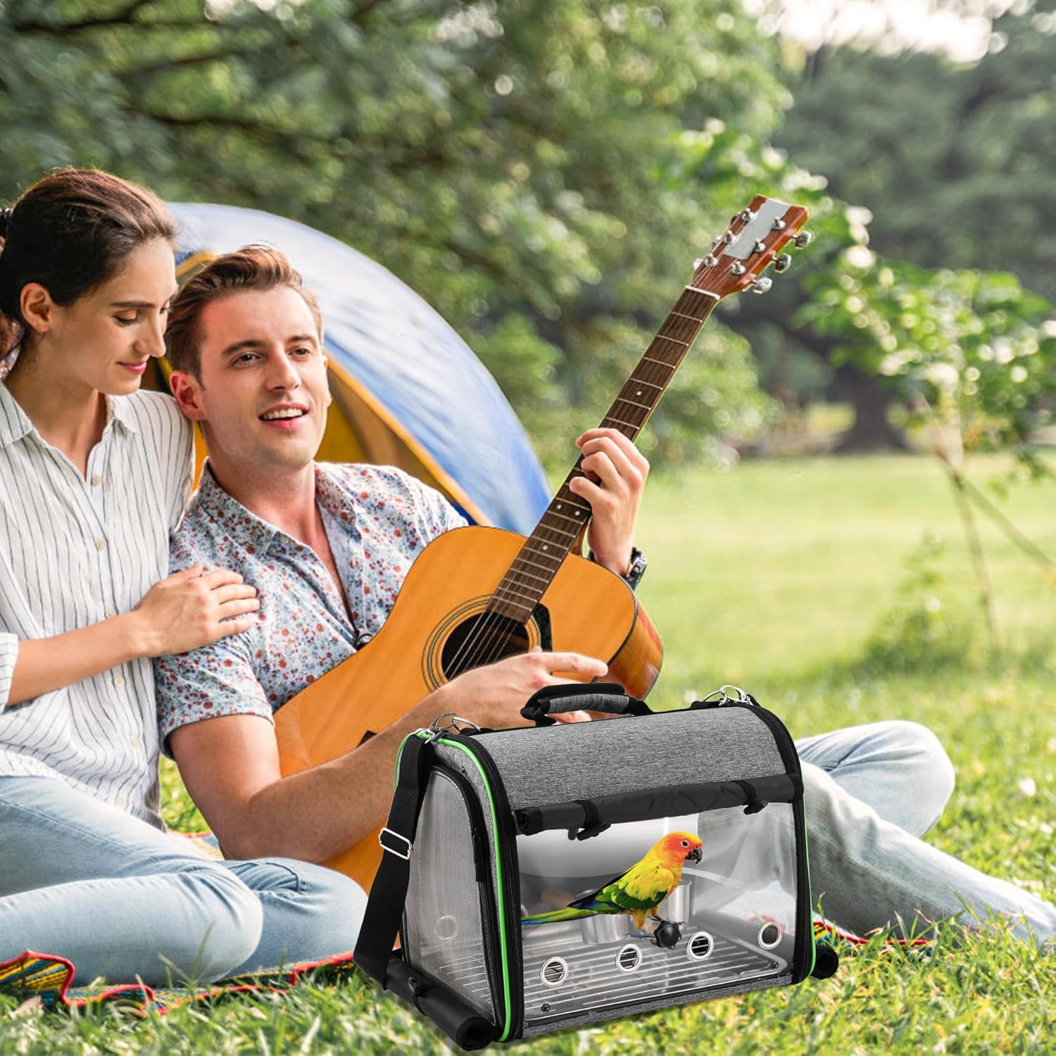 - 【PORTABLE & LIGHTWEIGHT】Suertree bird travel carrier is made of ultra light material, which makes it easy to carry. It can be carried by handle or hung on shoulder when going out. In addition, the bird cage can be tied to the car seat with a safety belt to ensure the safety of birds when driving.