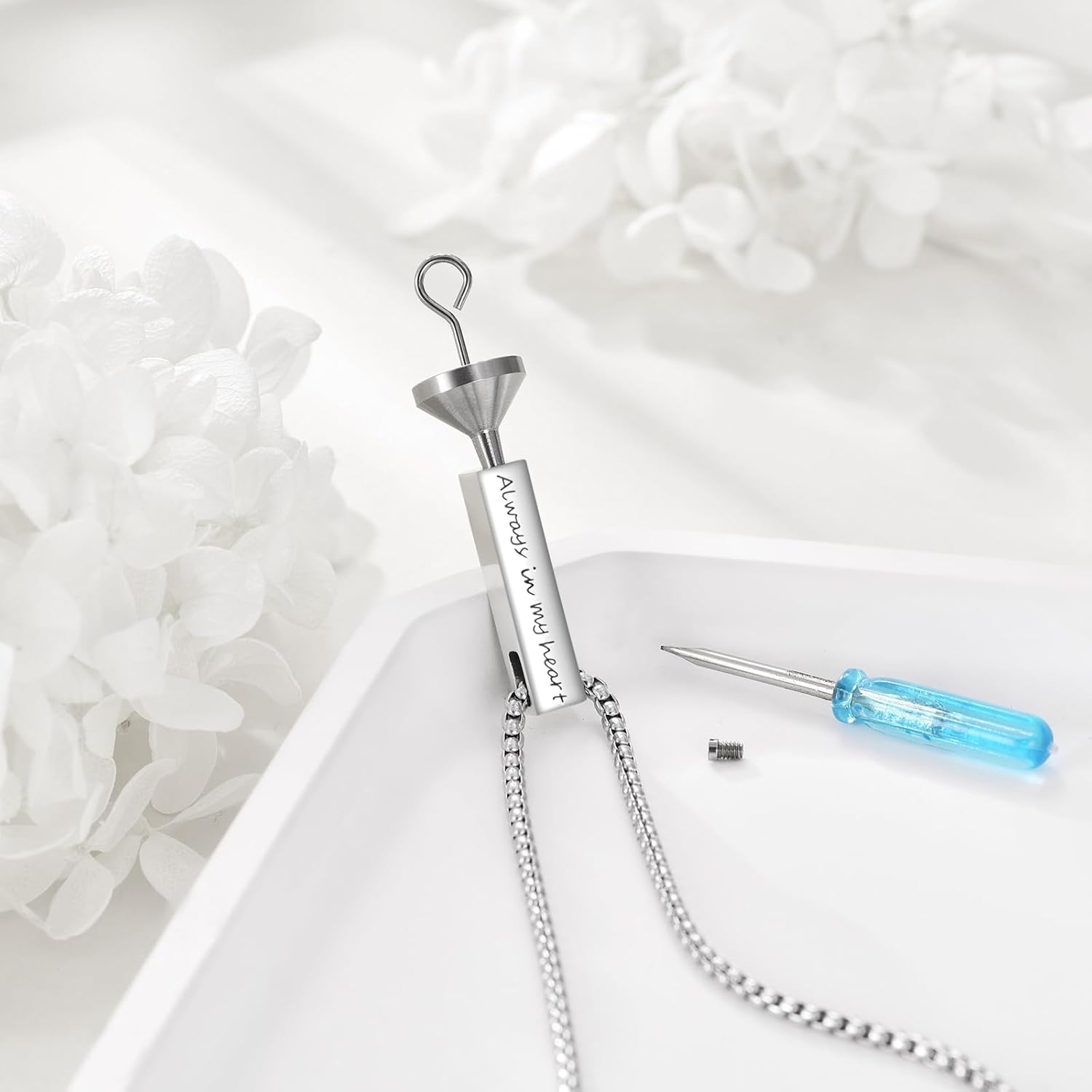Urn Necklaces for Ashes Sterling Silver 3D Vertical Bar Memorial Pendant for Loved Ones Keepsake Cremation Jewelry Gifts for Women Men