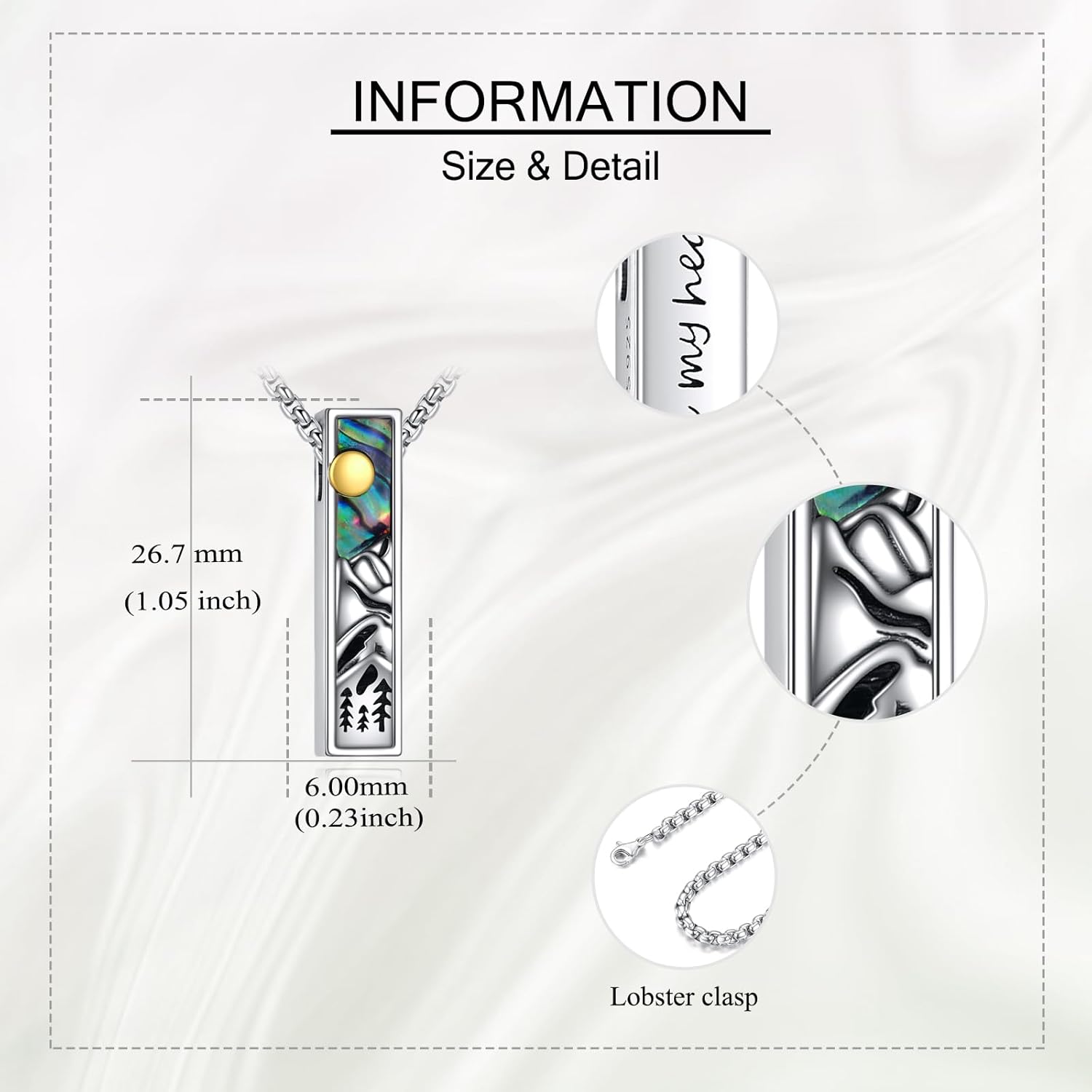 - ❤️Size:Mountain cremation jewelry pendant:1.05*0.23 inch, Chain length: 22+2 inch.Packaged in an elegant gifts box,Perfect for Giving or Safekeeping.
