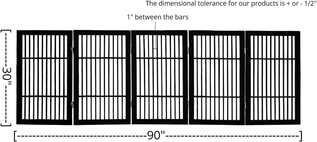 - This is a solid wood pet gate. The distance between the vertical bars is 1" This dog gate can be used on the porch outdoors. Urnporium Wooden freestanding pet gates are versatile barriers designed to keep pets confined to specific areas of the home while maintaining an attractive aesthetic. Constructed from durable wood, these gates feature a charming design that complements home decor and can easily be moved to different locations as needed.