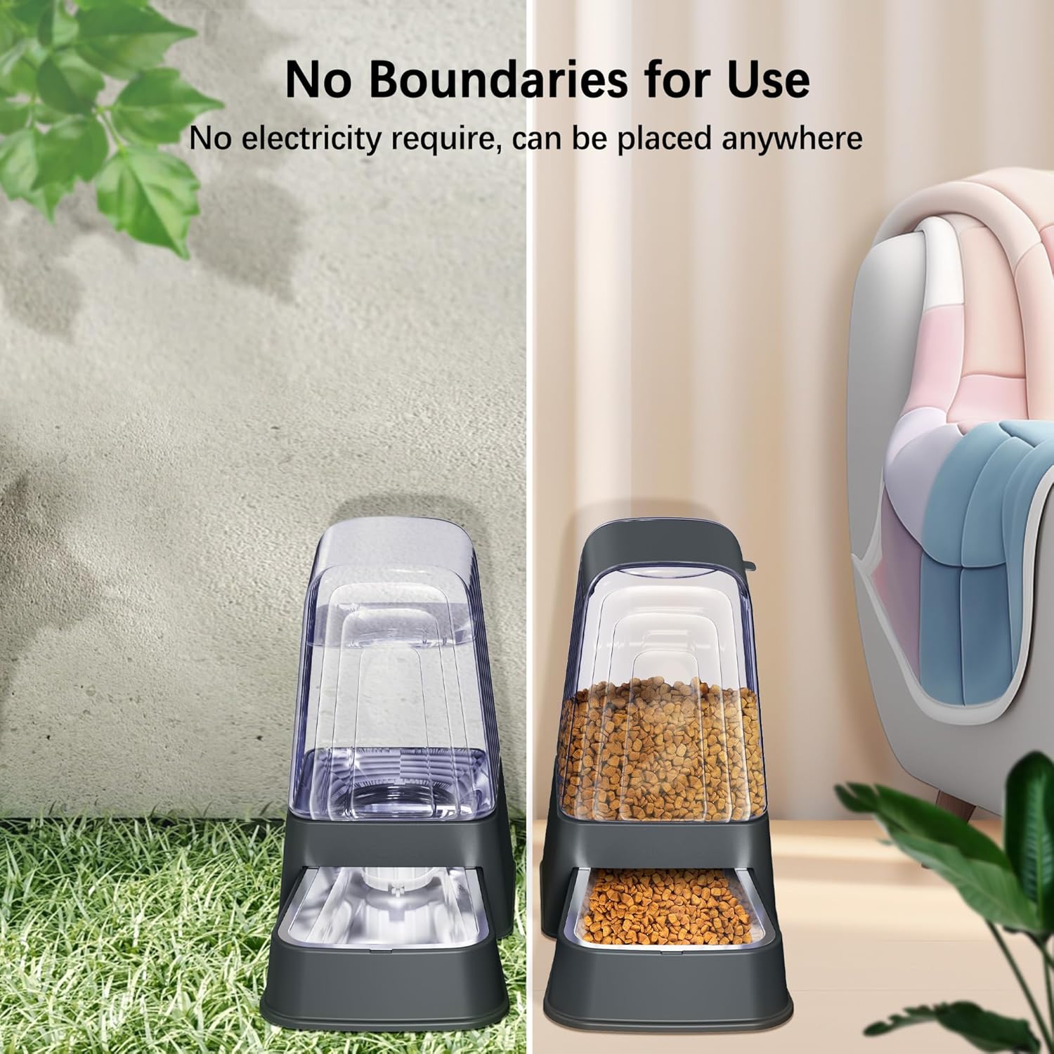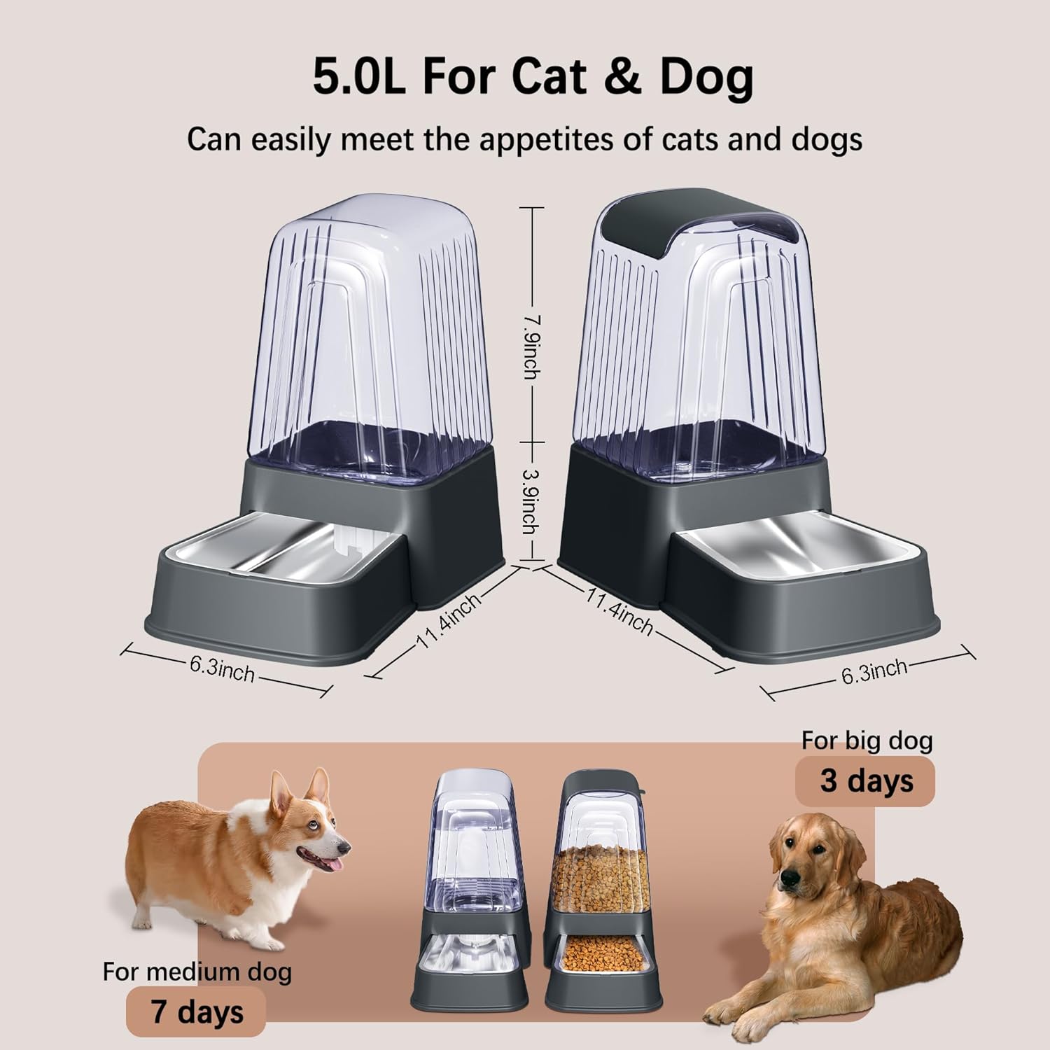 Automatic Dog and Cat Food Feeder and Water Dispenser Set with Stainless Steel Bowls,Gravity Pet Food and Water Feeders,100% BPA-Free,Large Capacity for Cats Dogs Pets… (5L Dark Gray)
