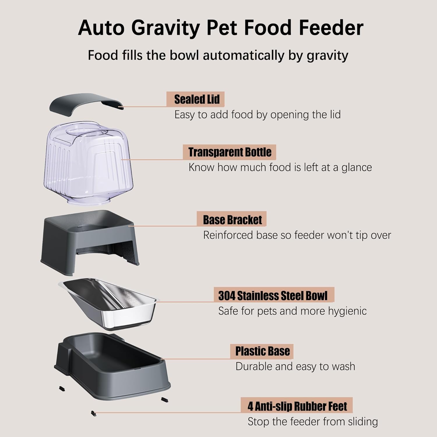 - Gravity Dog Feeder For Indoor And Outdoor Use: Both cat/ dog feeder and waterer are designed for gravity feeding, no electricity required, can be used both indoors and outdoors. The stable structure and four anti-slip rubbers on the bottom can prevent tipping or slipping. Also, we use durable materials to ensure long-term use