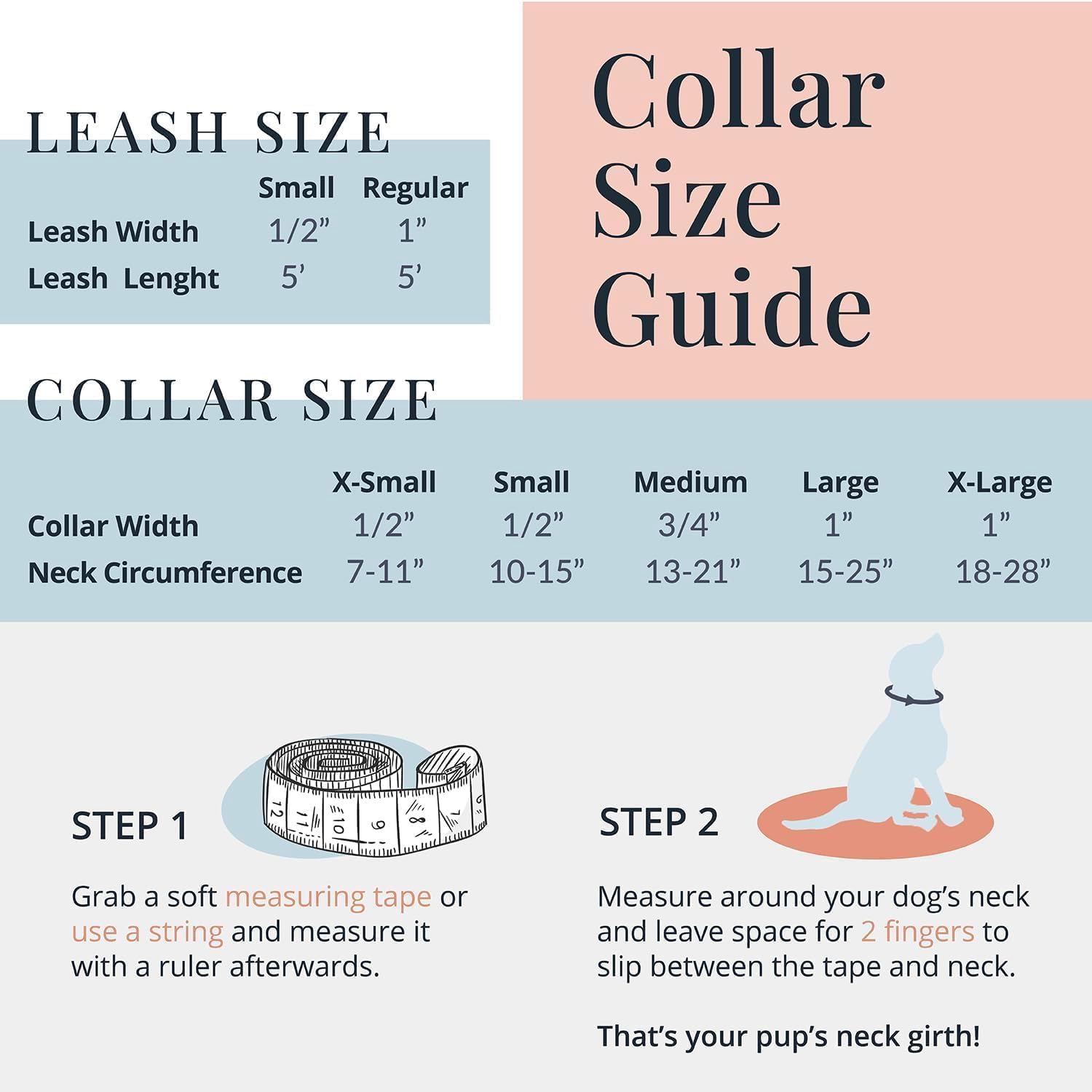 - COLLAR ONLY OR COLLAR AND LEASH COMBO - Our collar is available in four or five adjustable sizes ensuring a secure and comfortable fit for small puppies to large adult dogs. Complete the look by pairing it with a 5-ft matching leash featuring a soft hand loop for comfort and control during walks.