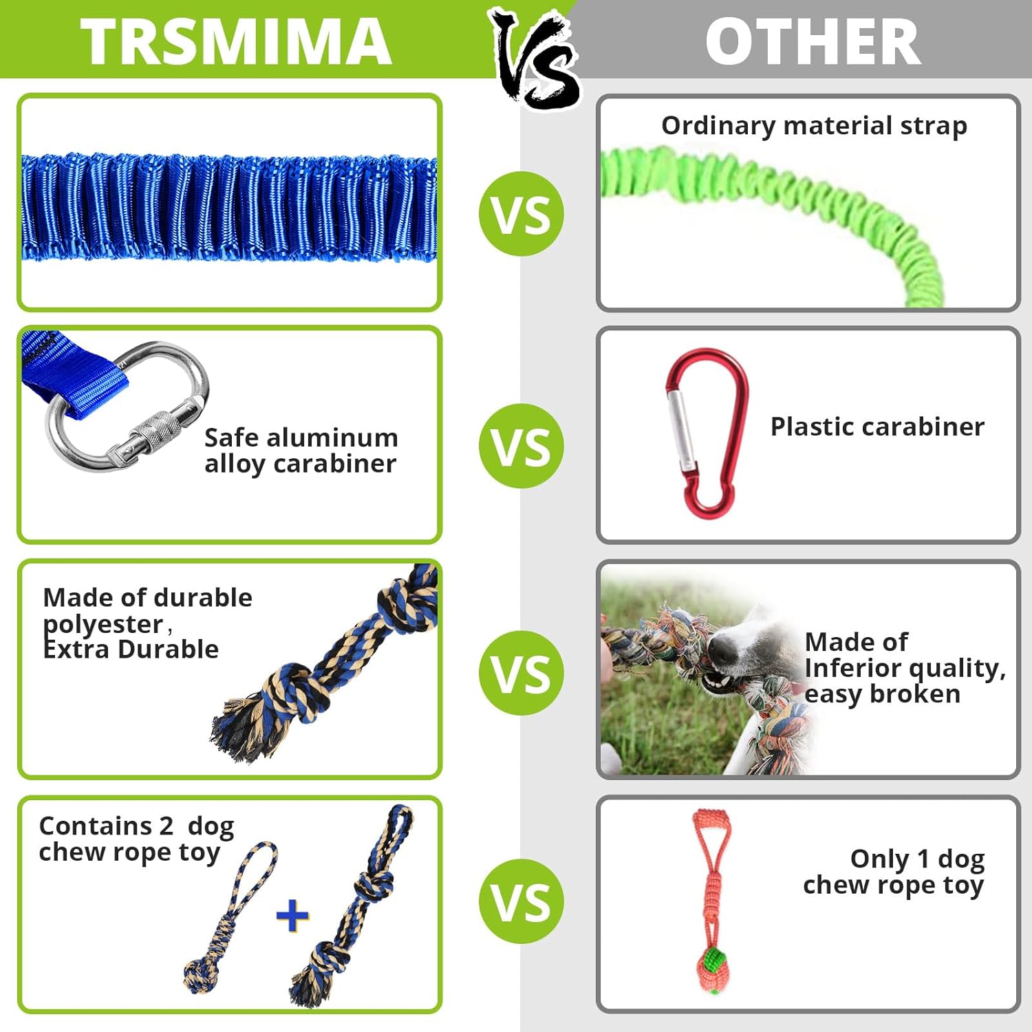 - š¶Durable & Safe Design: The material of bungee strap is sturdy, made from high-quality nylon. We covered it with polyester fiber braid to prevent the dog from rupturing the leash due to pulling. Keeping the rubber band in the air can protect it from canine teeth.We all love pet