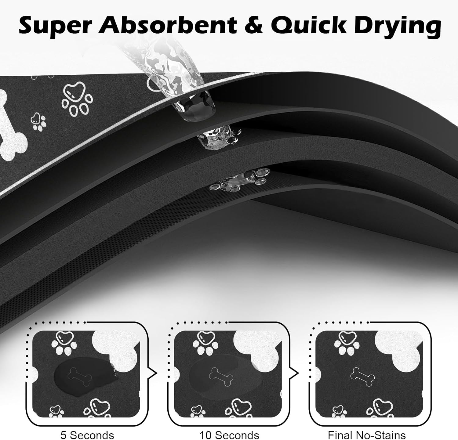 Pet Feeding Mat,Rapid Absorbent Mats for Dog Cat Food, Dog Placemat Water Bowl Mat with Rubber Backing,Messy Drinkers to Protect Floors, Pet Accessories 16"×24" Black