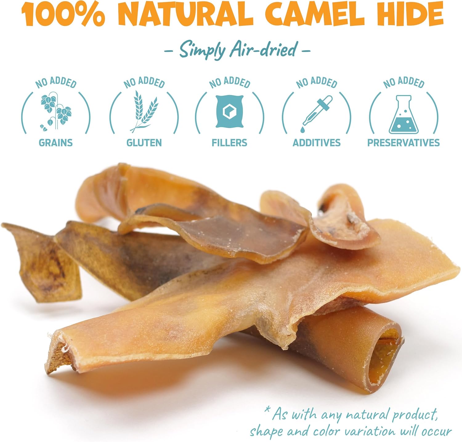 - Grain and Gluten-Free Treats: Suitable for puppies 12 weeks and over, our camel skin chews are free from grains, gluten, additives, or preservatives, ensuring a healthy and nutritious treat with low odor.