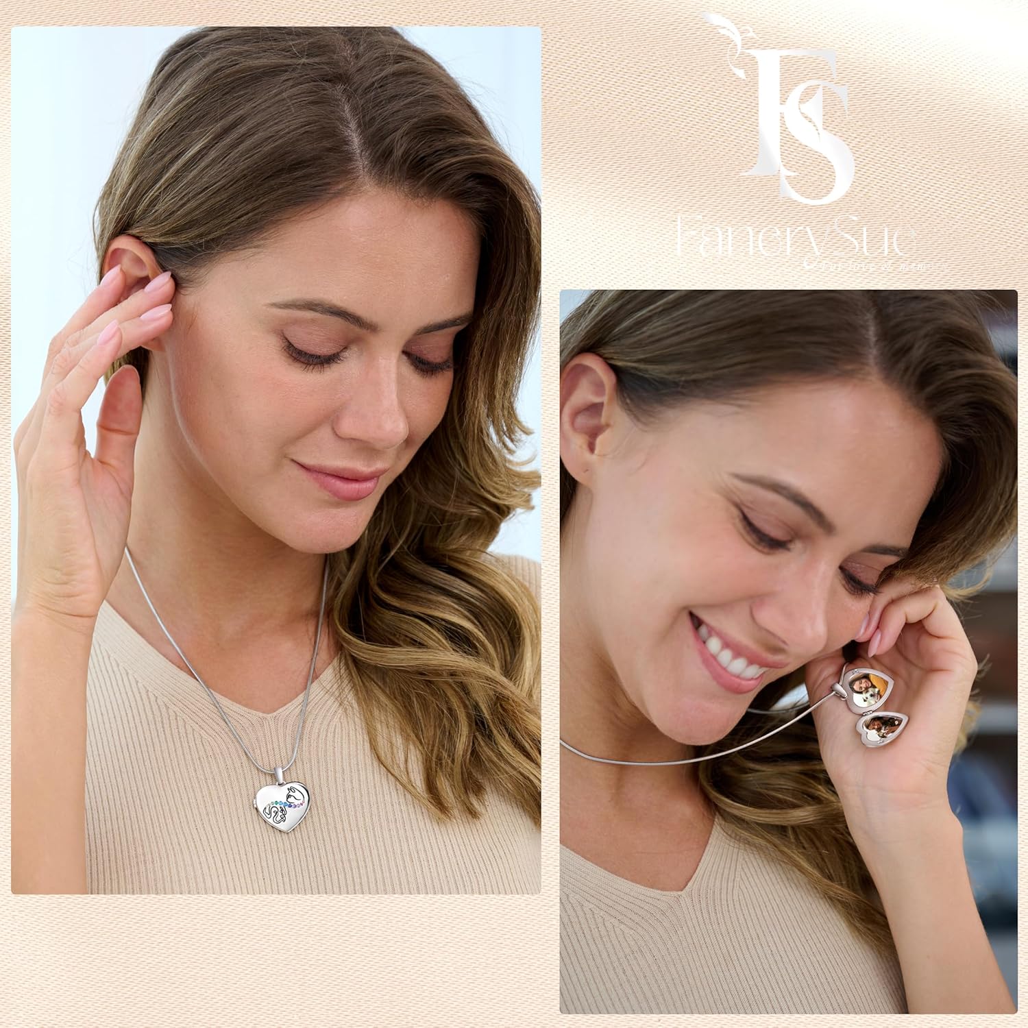 Fanery Sue Personalized Customized Pet Locket Necklace, Heart Lockets Picture Necklaces Dog Memorial Gifts Cat Sympathy for Women Men