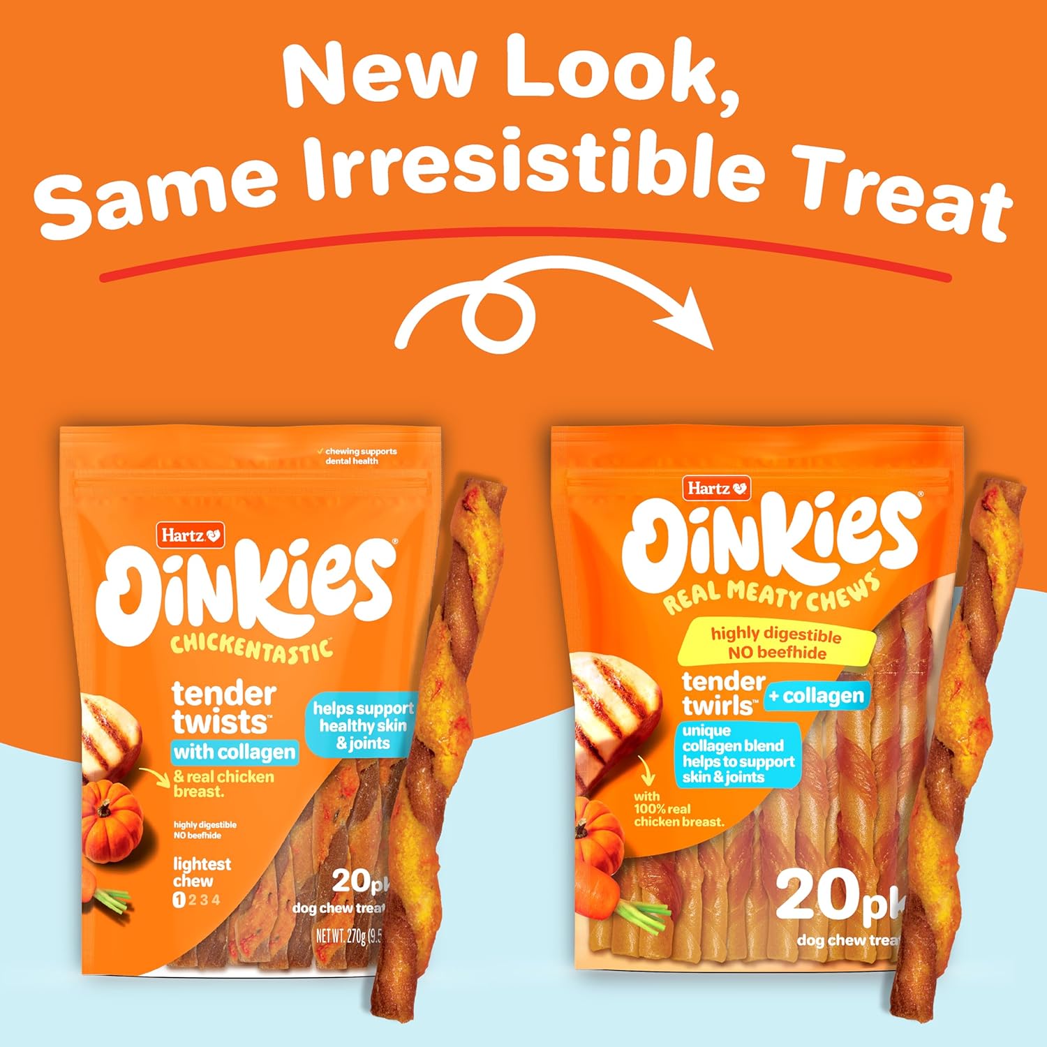 Hartz Oinkies Twirls + Collagen to Support Skin & Joints, Made with Real Chicken Breast, Highly Disgestible Dog Chews, 20 Count