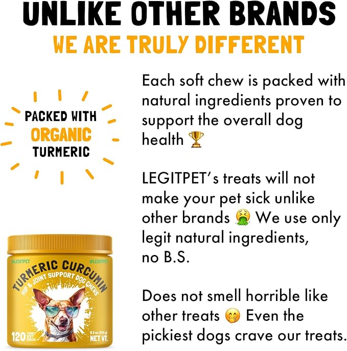 - NATURAL & ORGANIC INGREDIENTS: Our chews are made from 100% organic turmeric and free from artificial additives, fillers, and preservatives. This ensures that your dog receives a safe, natural supplement.