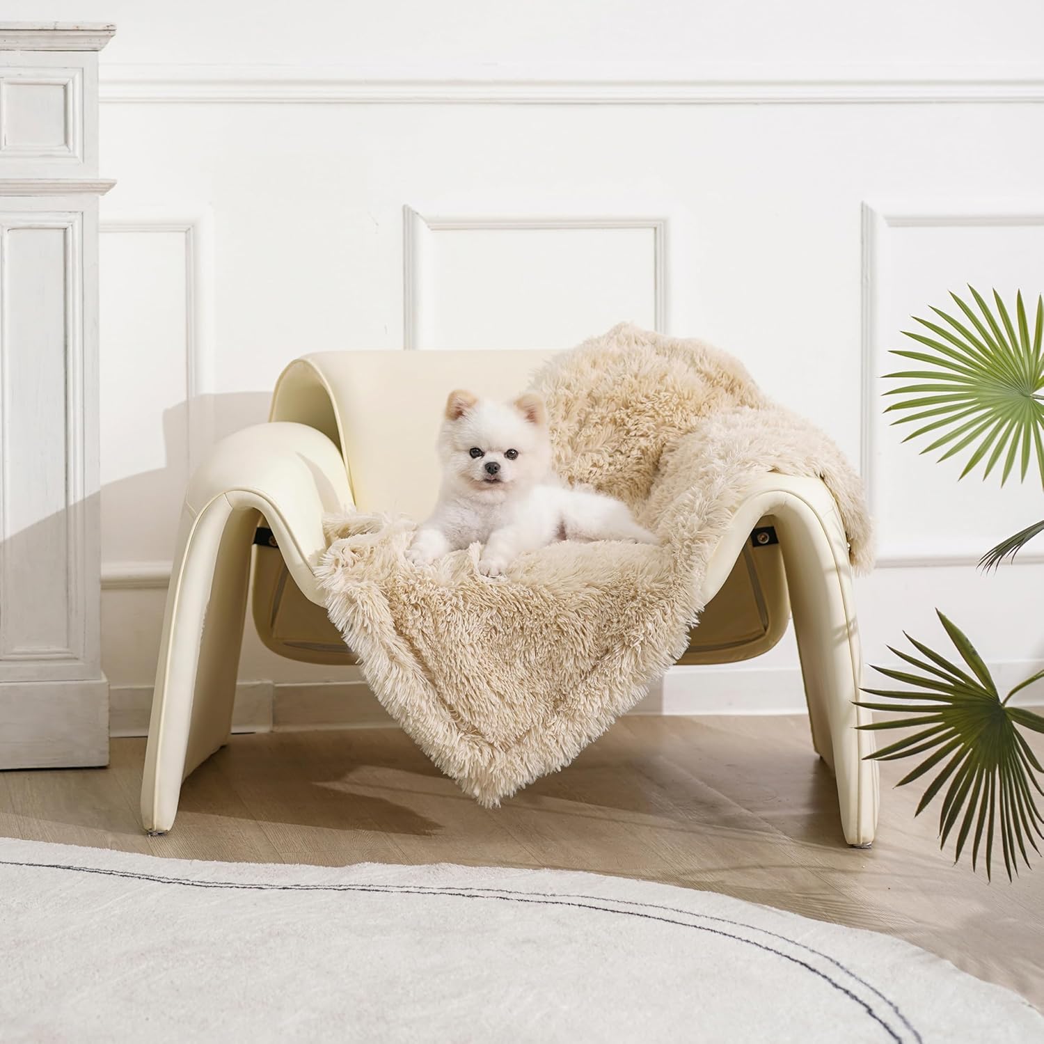 gogobunny Waterproof Dog Blanket for Large Dogs, Cats, Puppy, Reversible Faux Fur Pet Throw Blanket, Washable, Calming Furniture Protection for Sofa Bed (25x35 Inch (Pack of 1), Beige)