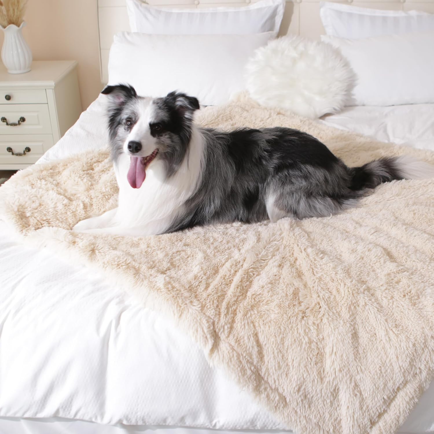gogobunny Waterproof Dog Blanket for Large Dogs, Cats, Puppy, Reversible Faux Fur Pet Throw Blanket, Washable, Calming Furniture Protection for Sofa Bed (50x60 Inch (Pack of 1), Beige)