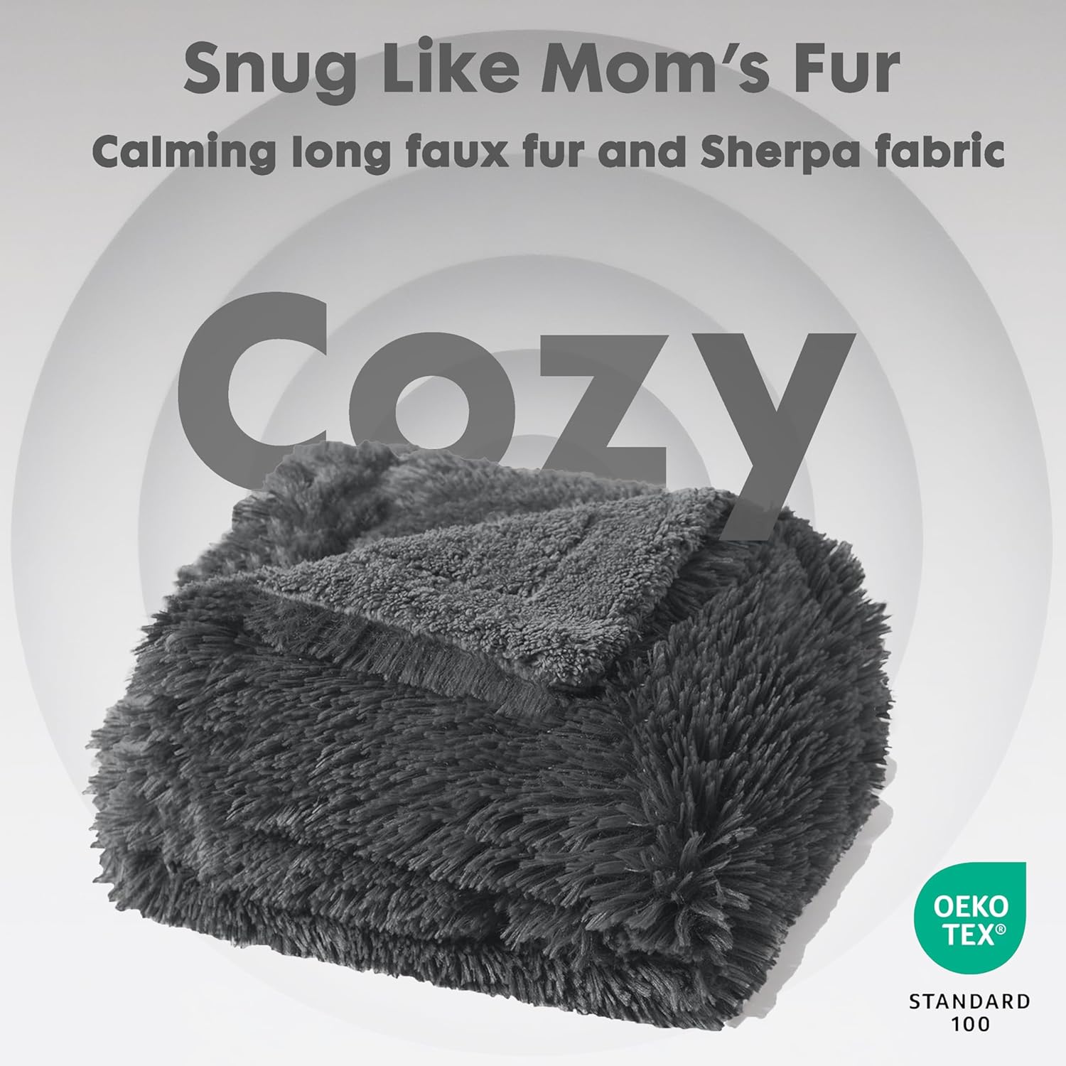 - MATERIAL: The pet blanket is made of luxurious faux fur and high-quality flannel, with modern pet-safe dying techniques. The material helps your pet reduce anxiety and feel as if it were back in its mother's embrace