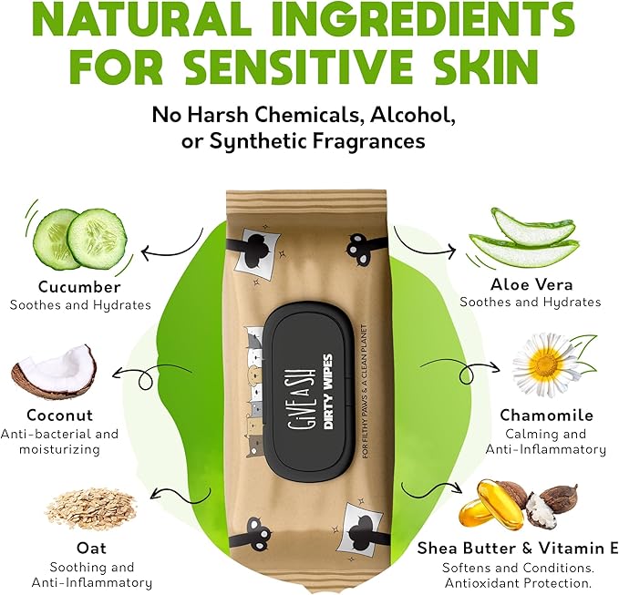 - HYPOALLERGENIC & GENTLE ON SENSITIVE PET SKIN - Made with all-natural soothing Aloe, Oatmeal, Shea Butter & Cucumber. These unscented puppy wipes and cat cleaning wipes are free from harsh chemicals, alcohol, parabens, and artificial fragrances - gentle enough for sensitive skin.