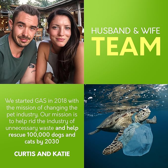 - SMALL BUSINESS WITH A MISSION TO RESCUE 100,000 ANIMALS - Founded by husband-and-wife team Curtis and Katie, G.A.S is more than a brand - it’s a purpose. We’re here to change the pet care industry with heart, honesty, and impact.