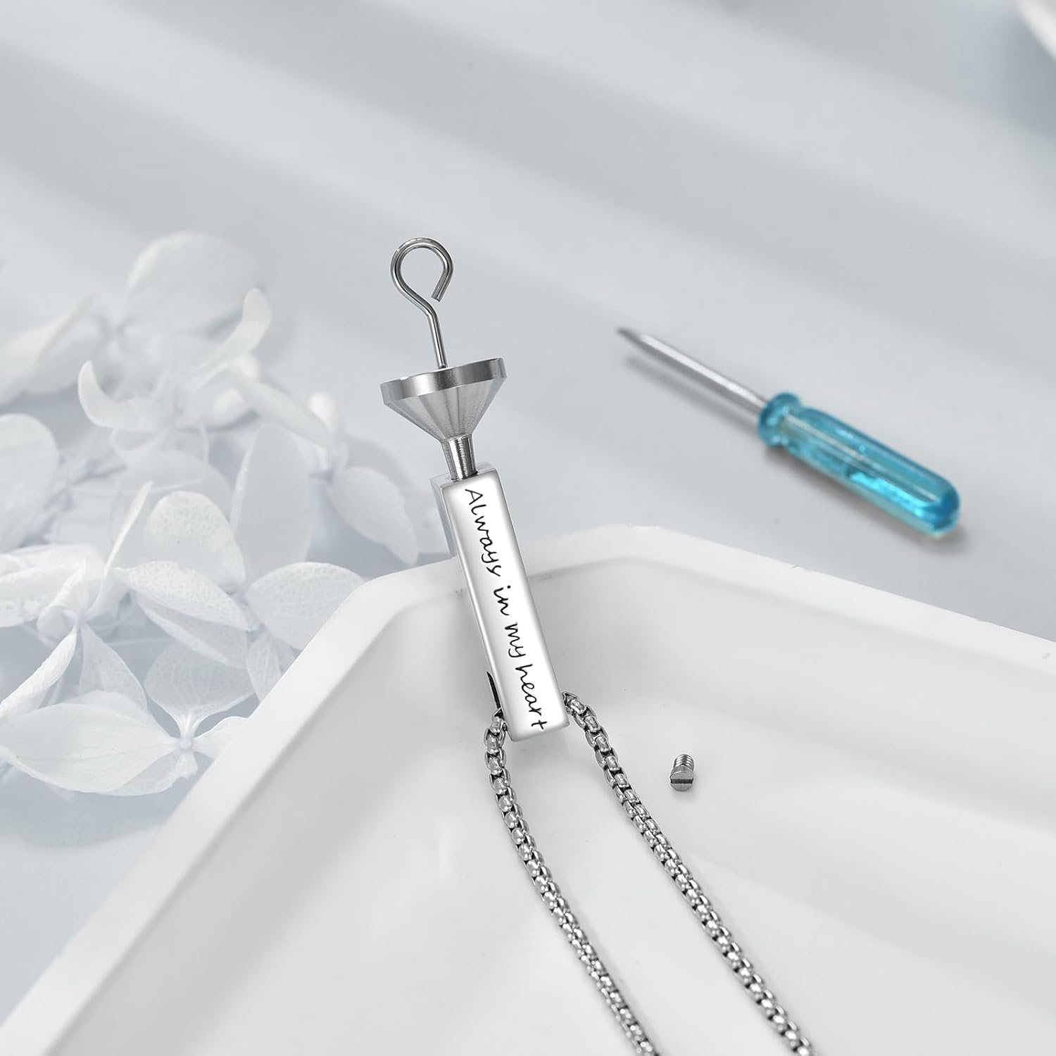 Urn Necklaces for Ashes Sterling Silver 3D Vertical Bar Memorial Pendant for Loved Ones Keepsake Cremation Jewelry Gifts for Women Men