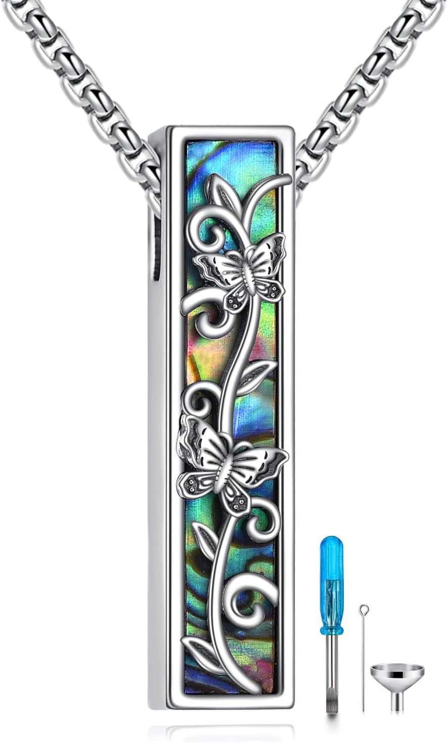 - ❤️Design:Bar Butterfly urn necklace, Screws from the bottom of urn, allowing you to place a small amount of ashes in it. If you don't want/have ashes, you can also pour perfume in or add crushed flowers, dirt, hair, sand and notepaper.
