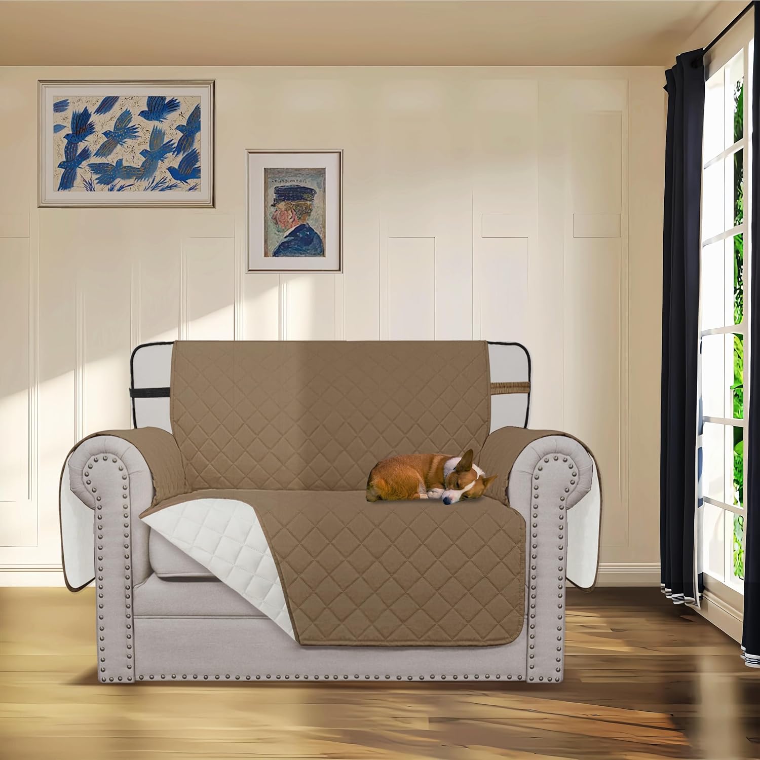 Easy-Going Reversible Chair Cover Washable Sofa Cover for Dogs Water Resistant Couch Slipcover Furniture Protector Cover with Adjustable Straps for Pets (Chair 30 in, Camel/Ivory)