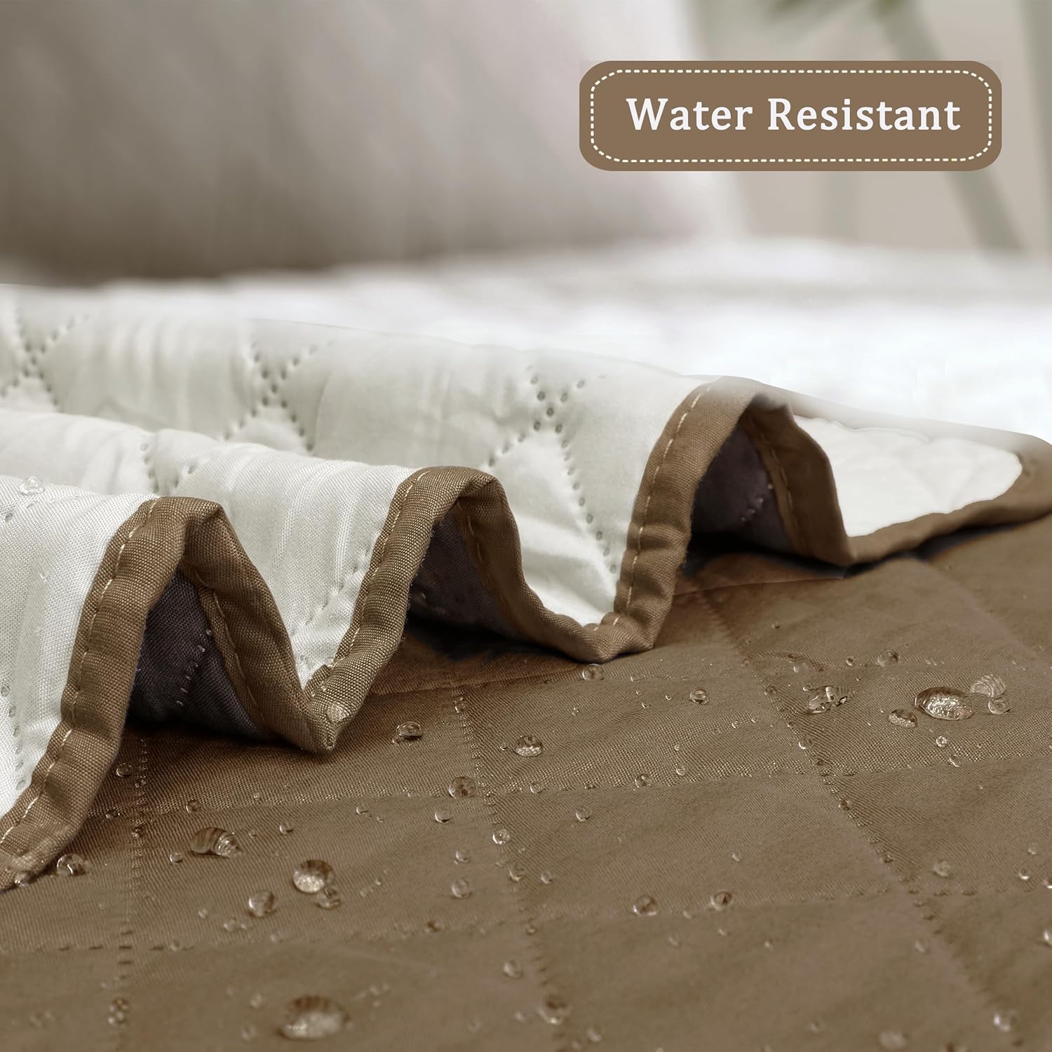 - High Quality: Super durable 3-layers quilted fabric, elegant quilted texture, thick microfiber, colorfast, water resistant. Two color options. Double the use.