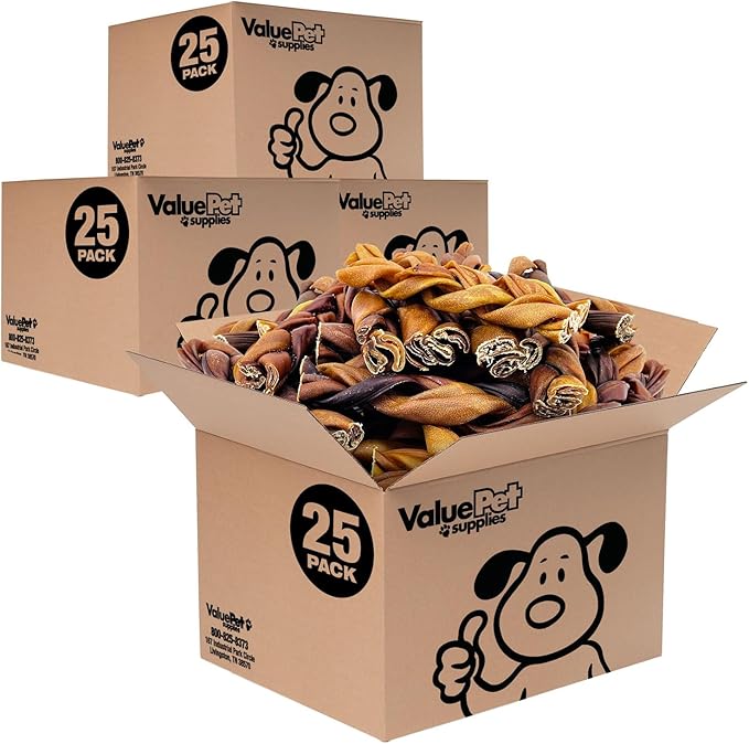 ValueBull Collagen Braided Sticks for Dogs, 6 Inch Thick Chews, Natural Long-Lasting Dog Treats, 100 Count Bulk Pack - Supports Joints, Skin & Coat with Chondroitin & Glucosamine