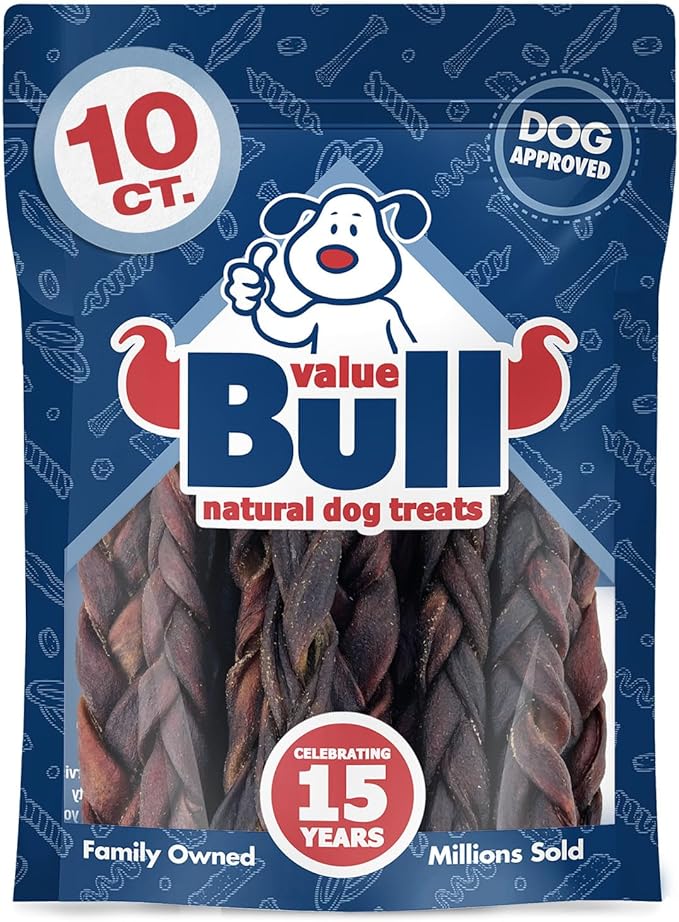 ValueBull Collagen Braided Sticks for Dogs, 6 Inch Medium Chews, Natural Long-Lasting Dog Treats, 10 Count - Supports Joints, Skin & Coat with Chondroitin & Glucosamine