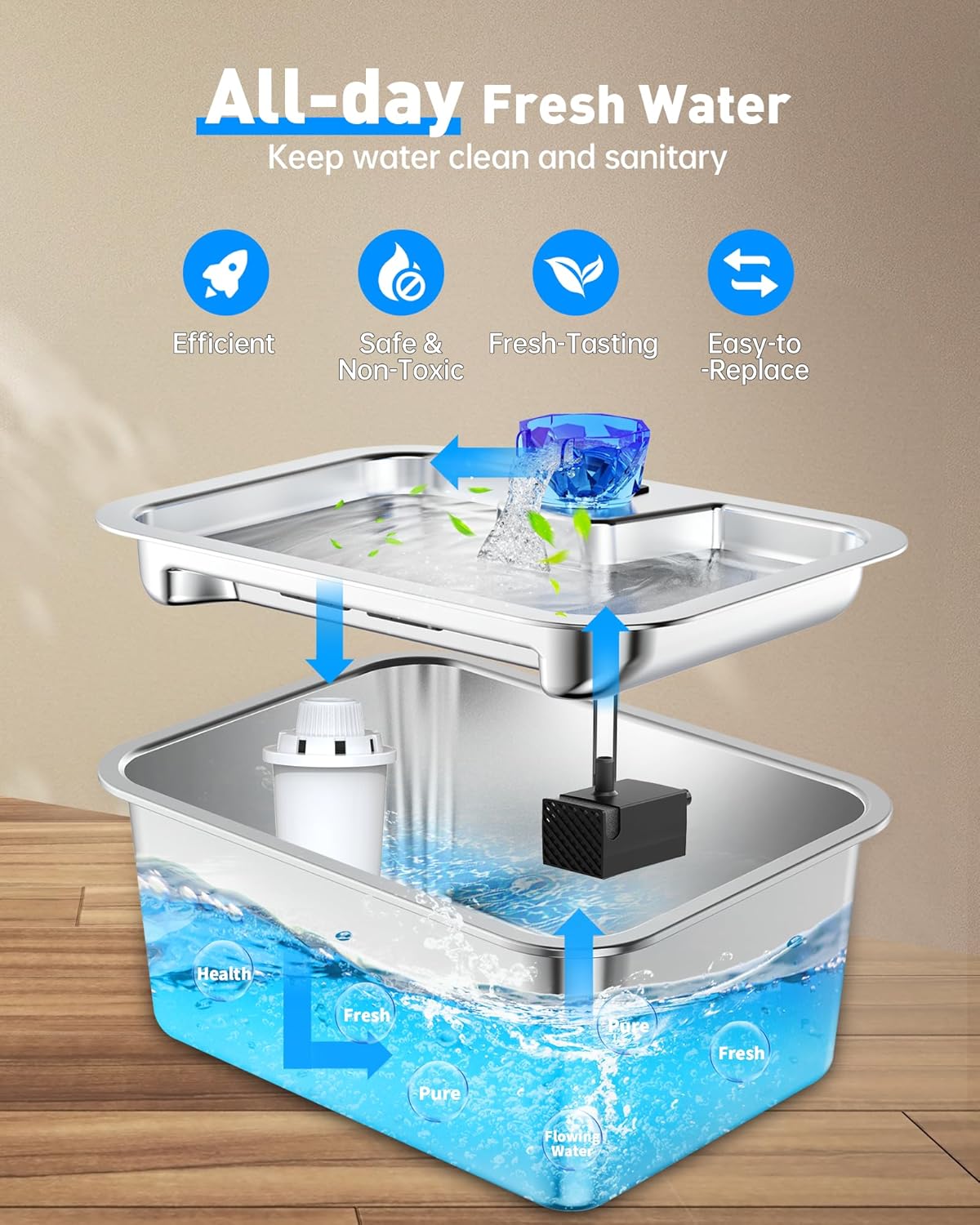 - 【Change Every 2 Weeks for Best Results】To maintain optimal filtration in your pet water fountain, replace filters every 2 weeks. Regular replacement supports consistent flow and keeps large dog water bowls clean, fresh, and odor-free.