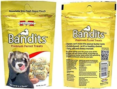 - Bundle Includes: Eight (8) 3 oz pouches of Bandits Premium Ferret Treats (2) Chicken (2) Peanut Butter (2) Banana (2) Meaty Bacon Flavor and (1) Aurora Pet Wipes (10 ct).