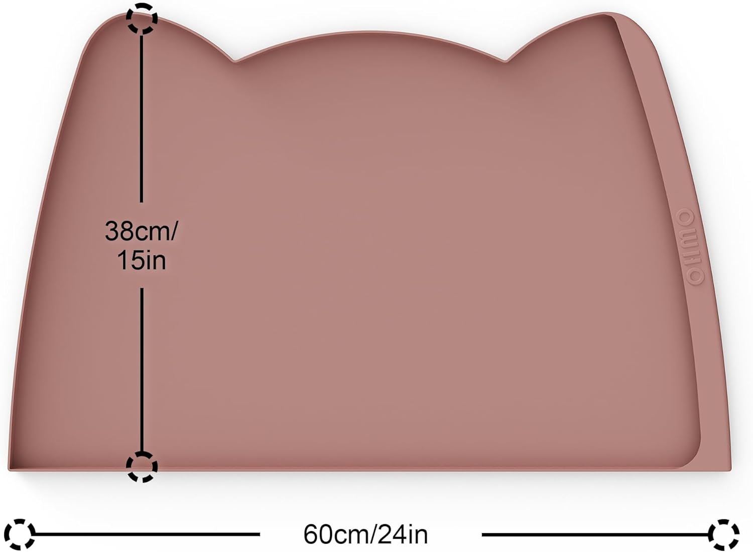 OHMO Dog Food Mat(Rose, 24 * 15'') w/Residue Collection Pocket Silicone Pet Feeding Mat for Floor High Edges Anti Spills Waterproof Cat Water Bowl Tray, Easy Clean Placemat