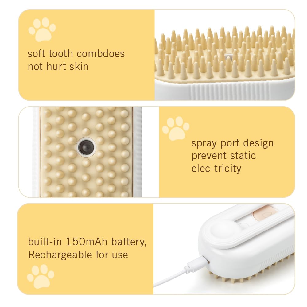 - Innovative Pet Steamy Technology – Refill with water or essence to gently mist your pet’s coat, reducing loose hair and tangles while keeping fur soft and hydrated. Say goodbye to messy clumps of fur around the home!